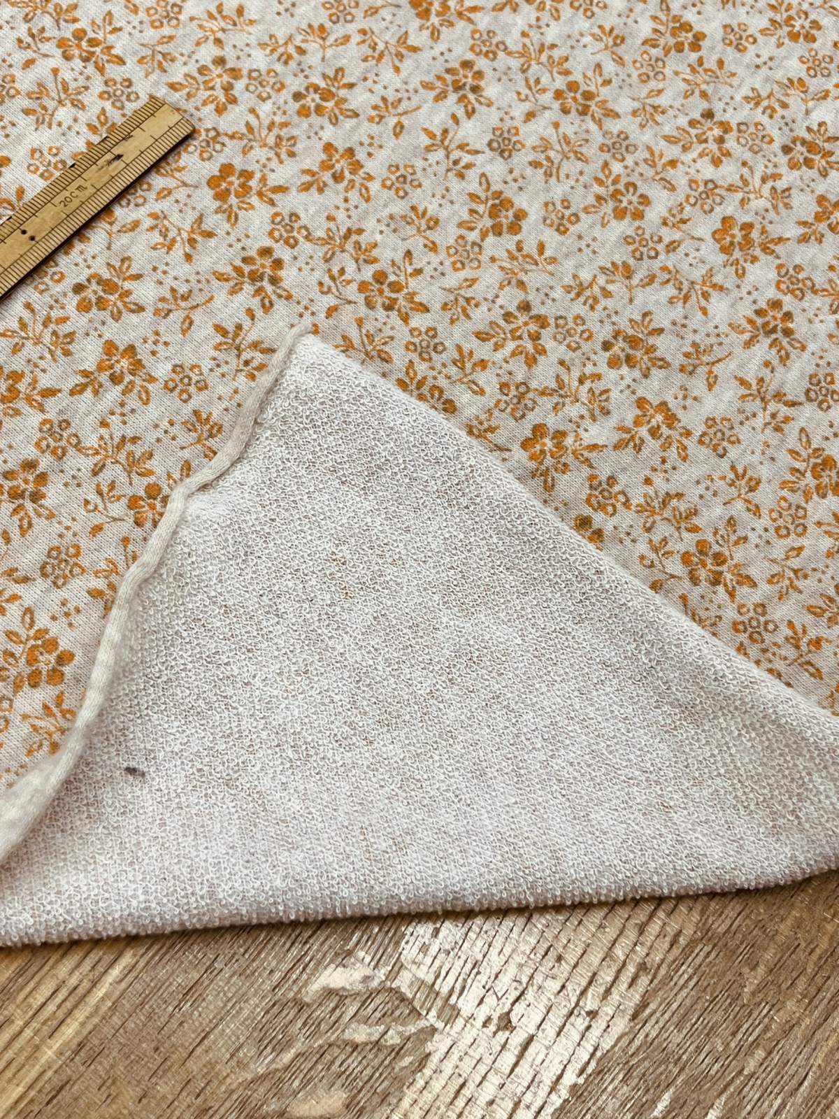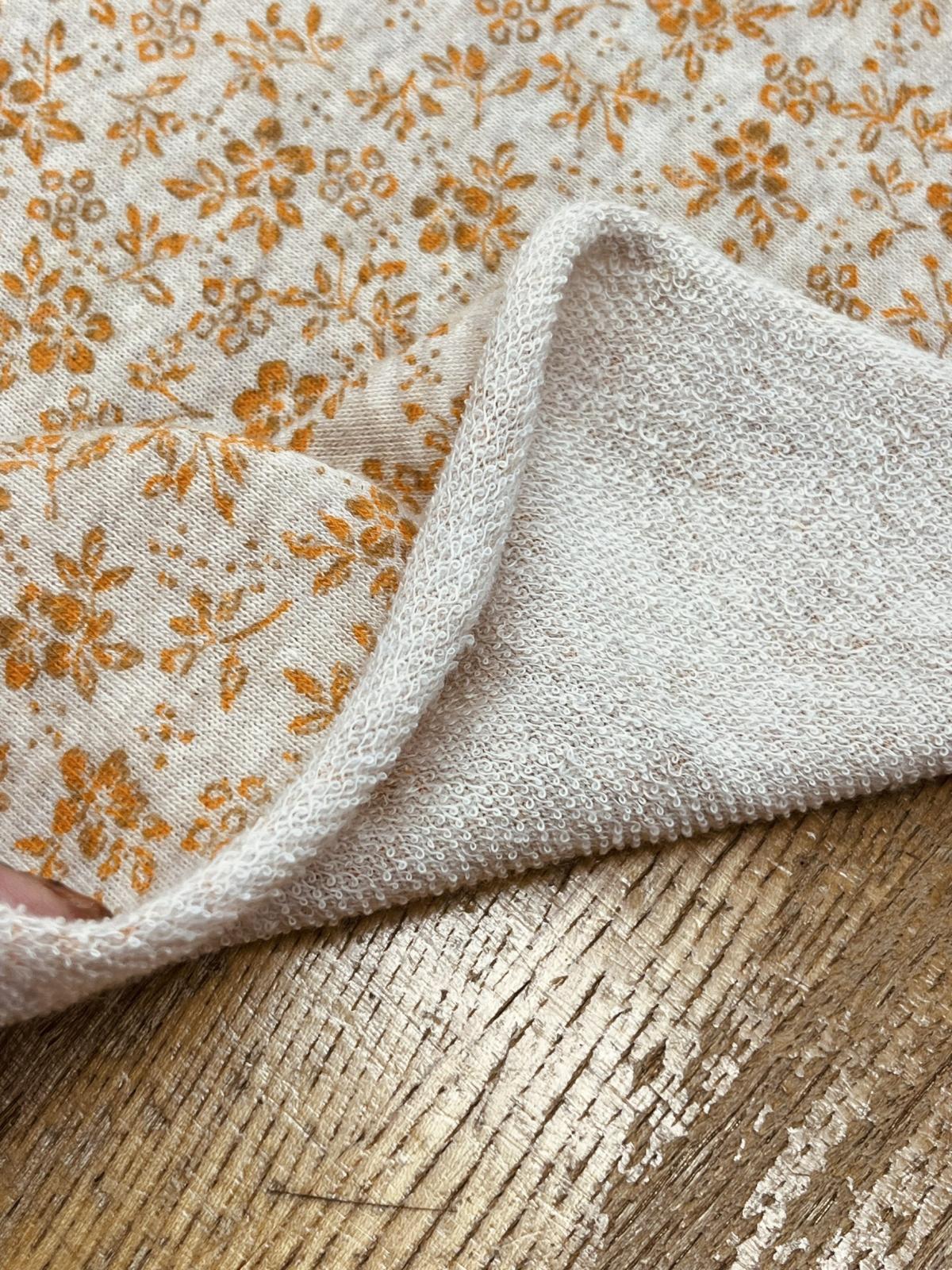 生地:花柄プリントミニ裏毛ニット(ベージュ×オレンジ)
