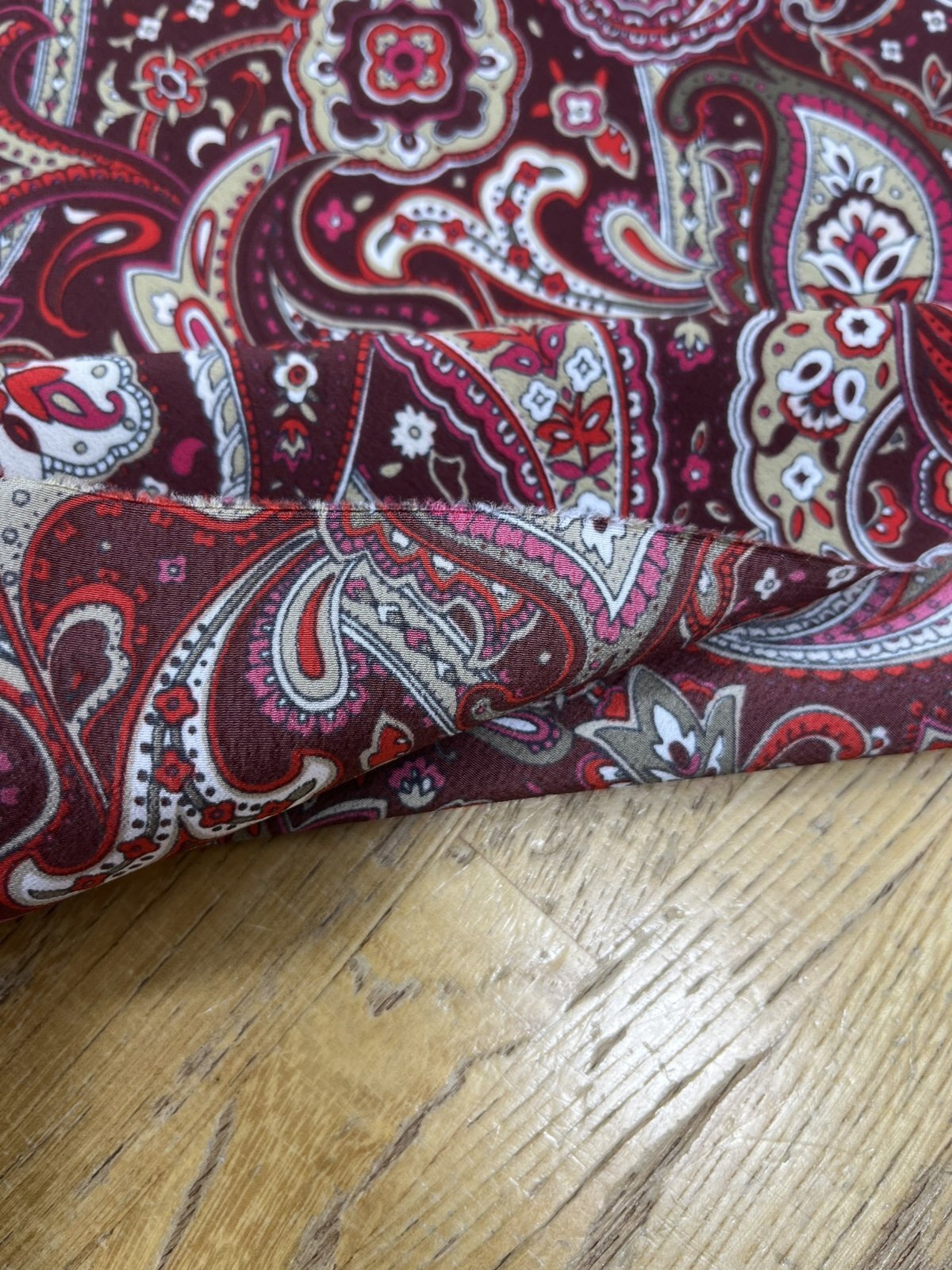 生地:ポリエステル100%ペイズリー柄プリント(赤系)