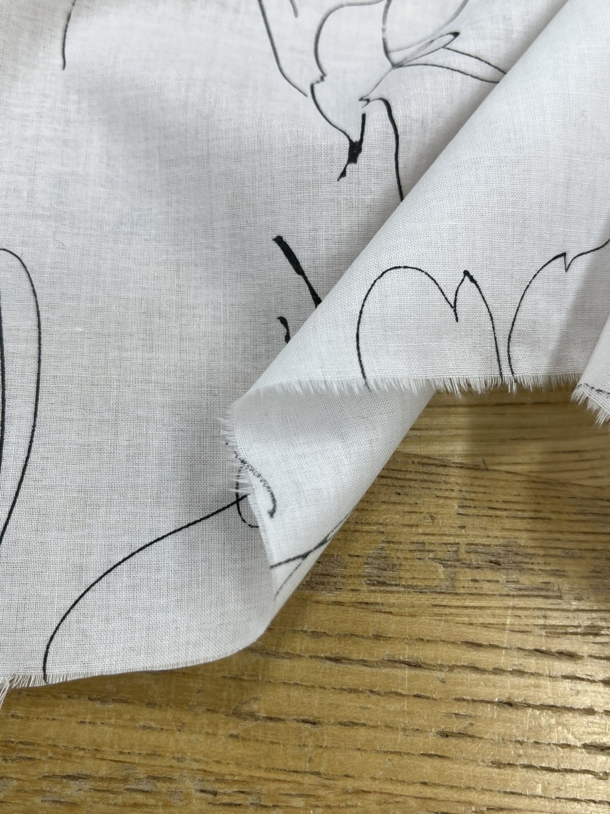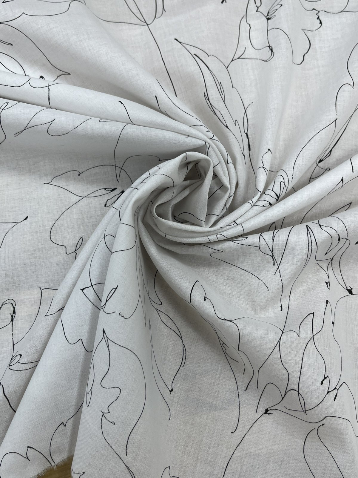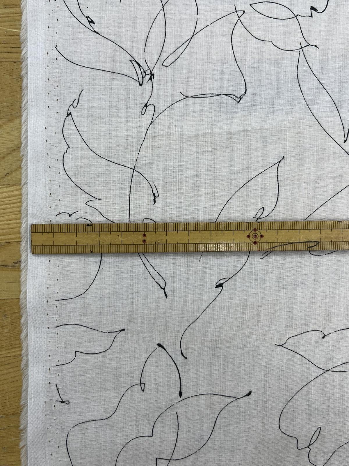 白地に黒の線画タッチで描かれた花と葉のモチーフが印象的で、繊細ながらモダンな雰囲気を演出します。