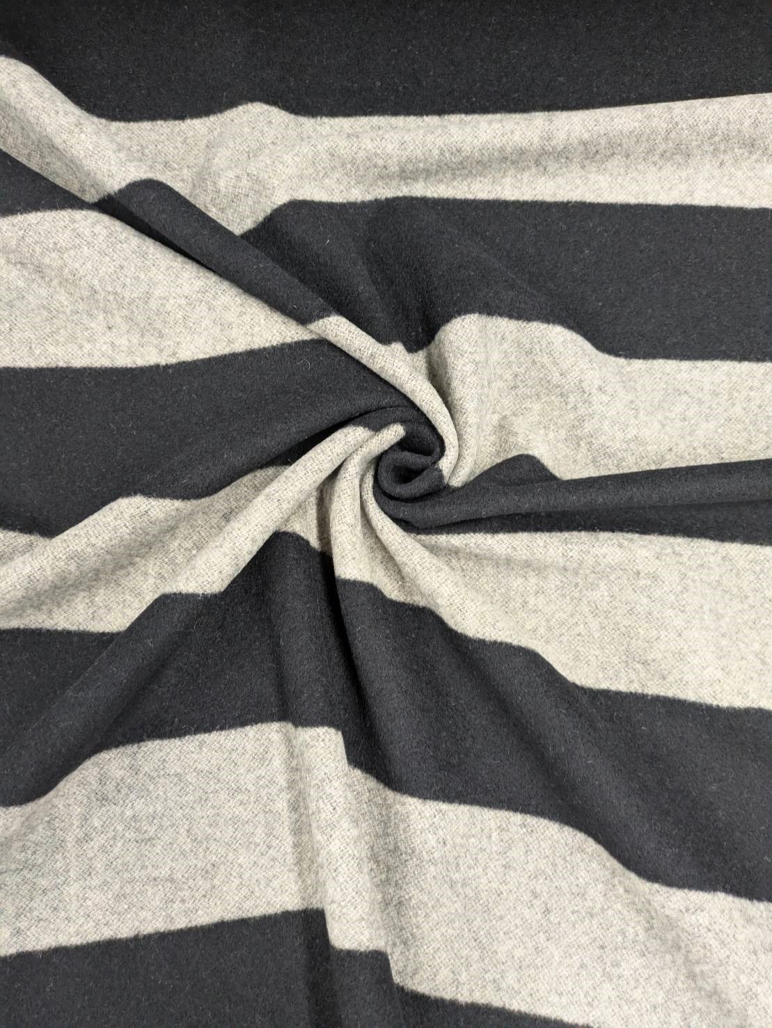 生地: ツイード太ボーダー柄ウール(ベージュ/黒) [kiji-3077]