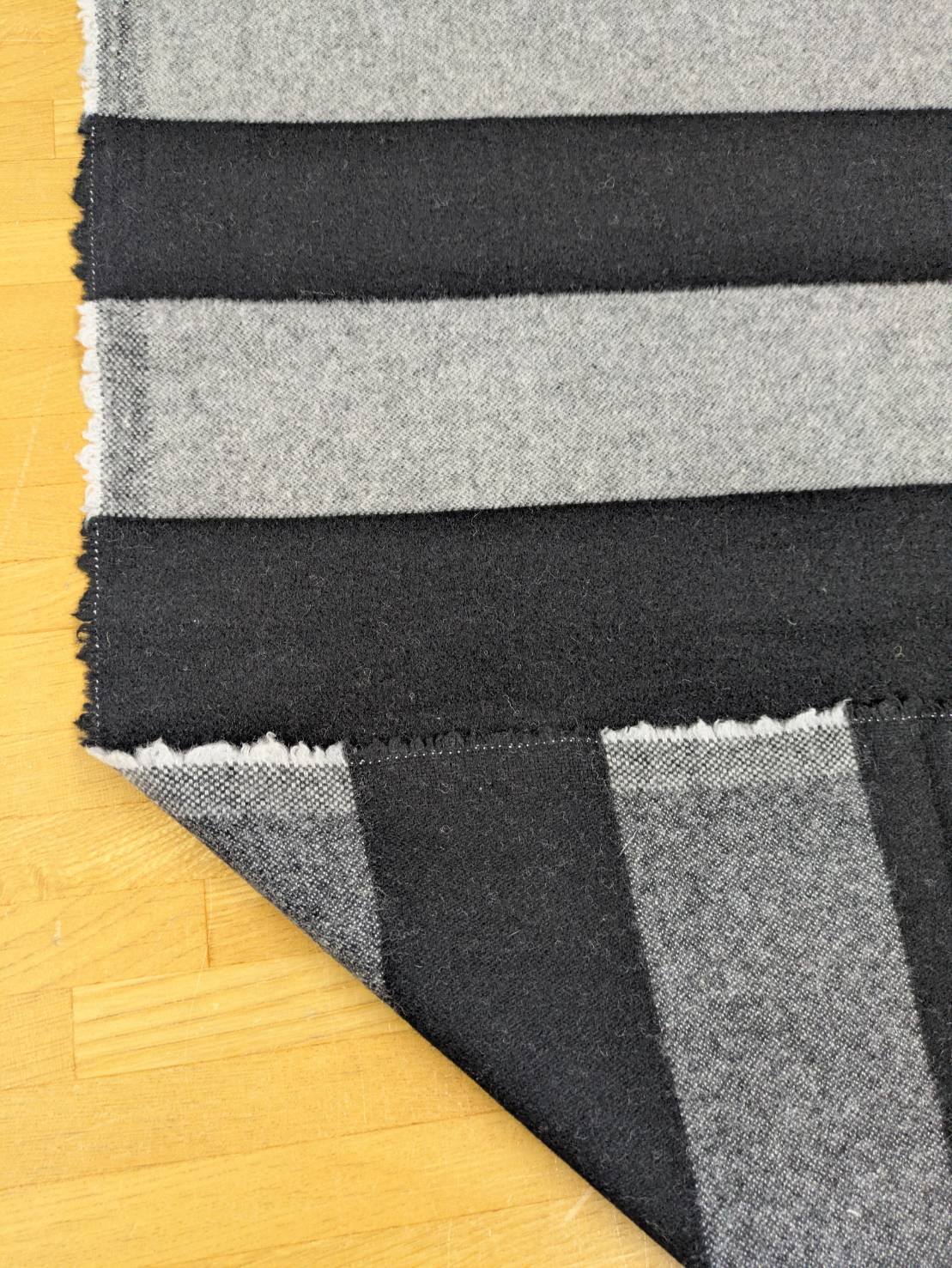生地: ツイード太ボーダー柄ウール(グレー/黒) [kiji-3078]