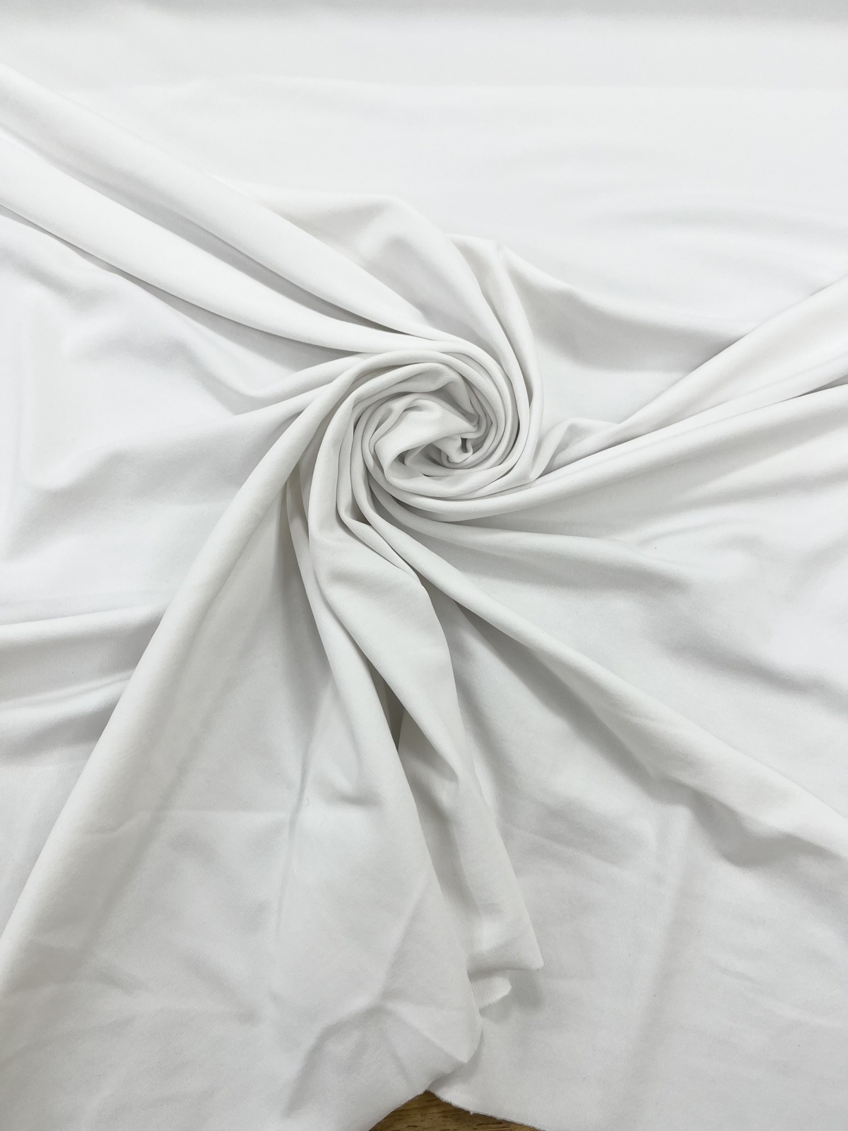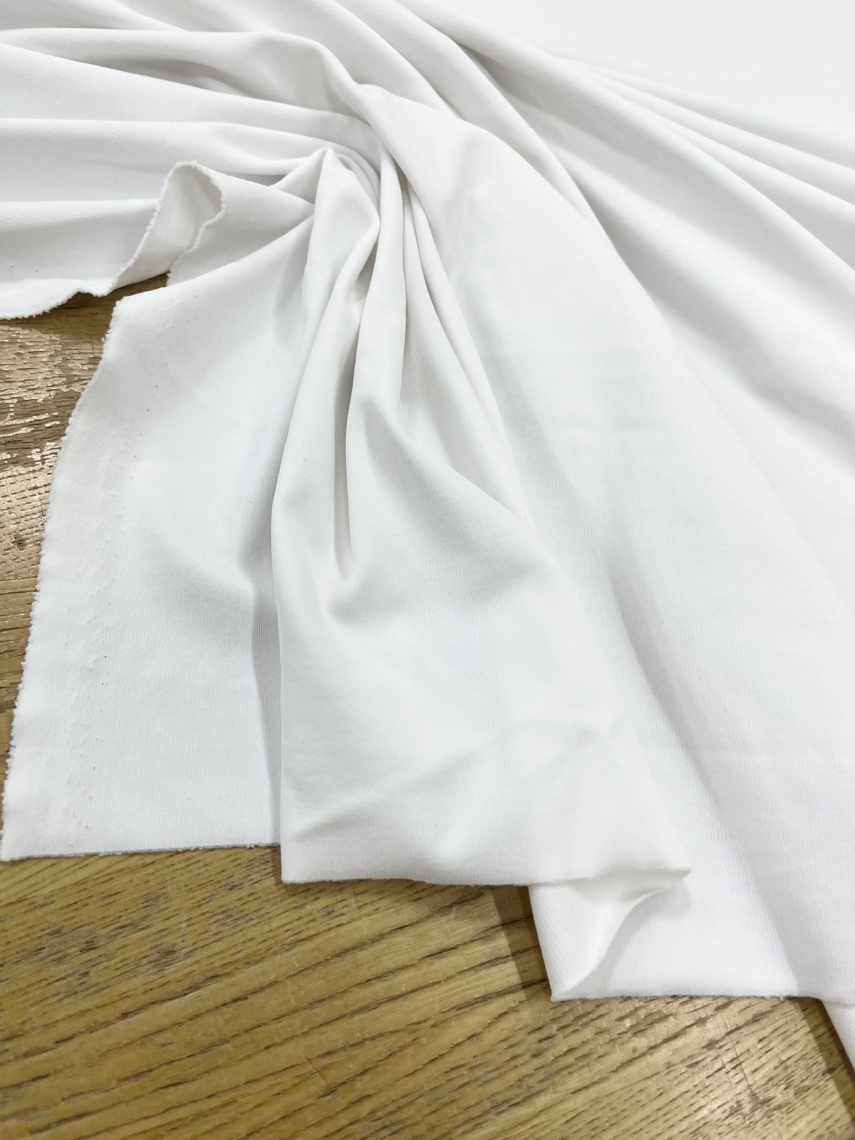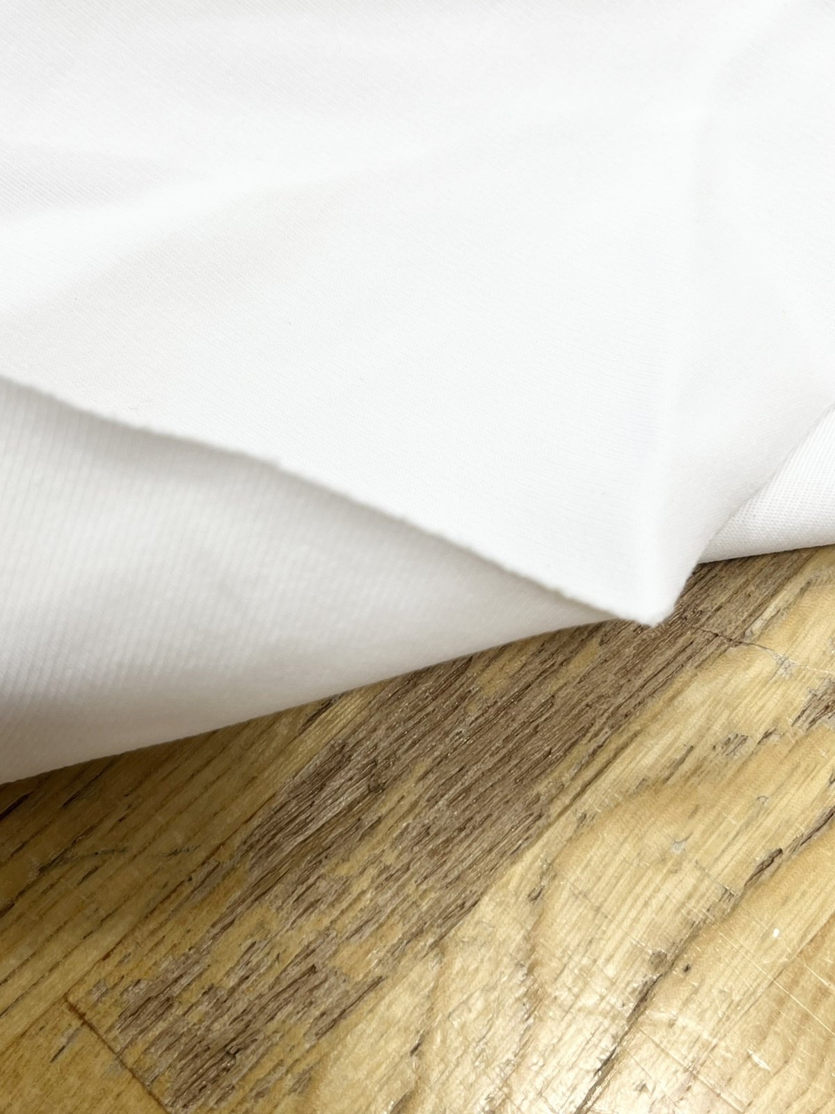 無地白に、ほんのりマットな質感が上品な折り(織り)エステルニットです。