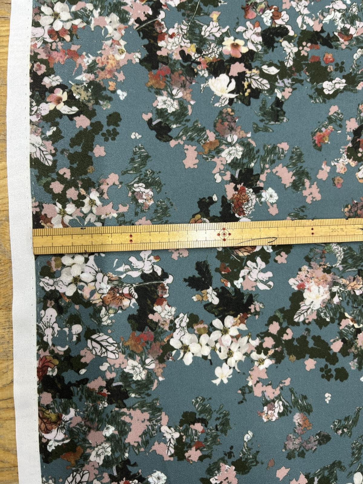 リアルタッチのフラワープリントが美しい、滑らかなポリエステル生地。
