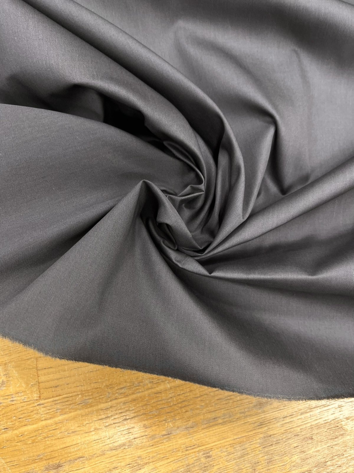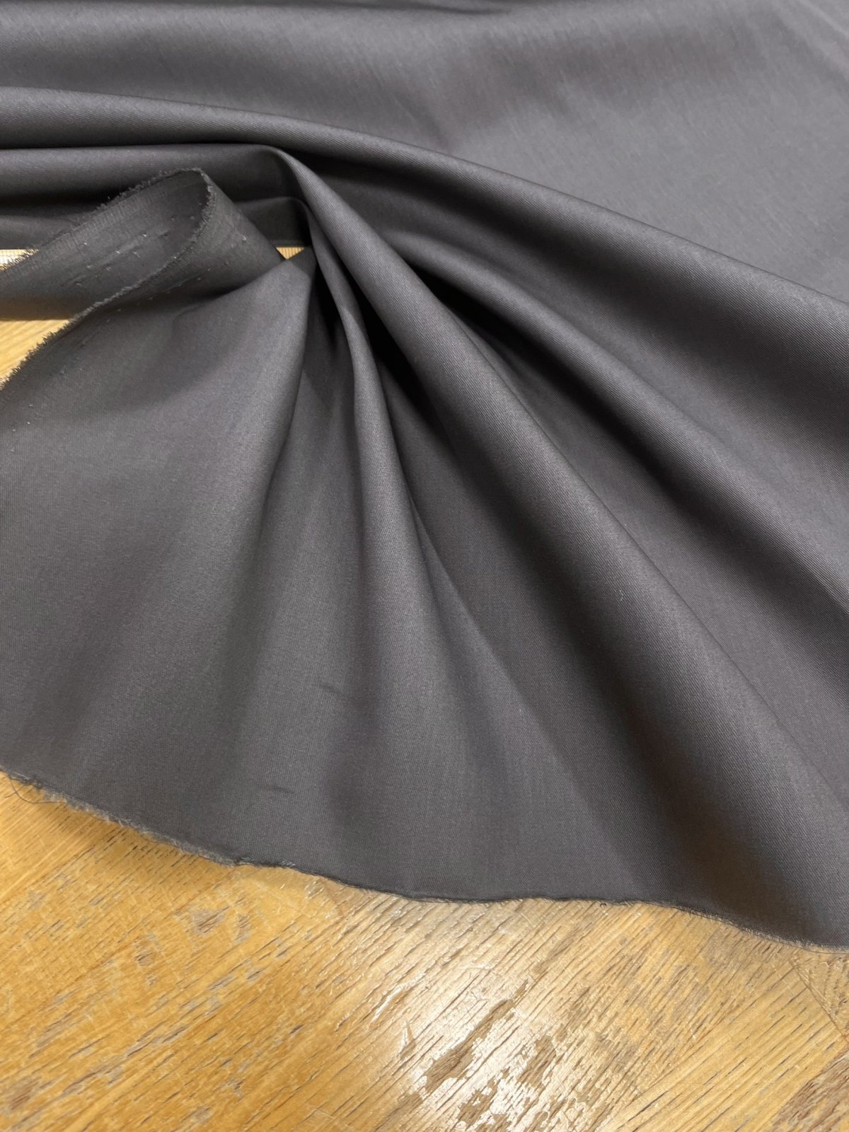 ツイル組織による細かな綾目が特徴で、手触りはさらりとしており、適度な厚みで透け感はありません。