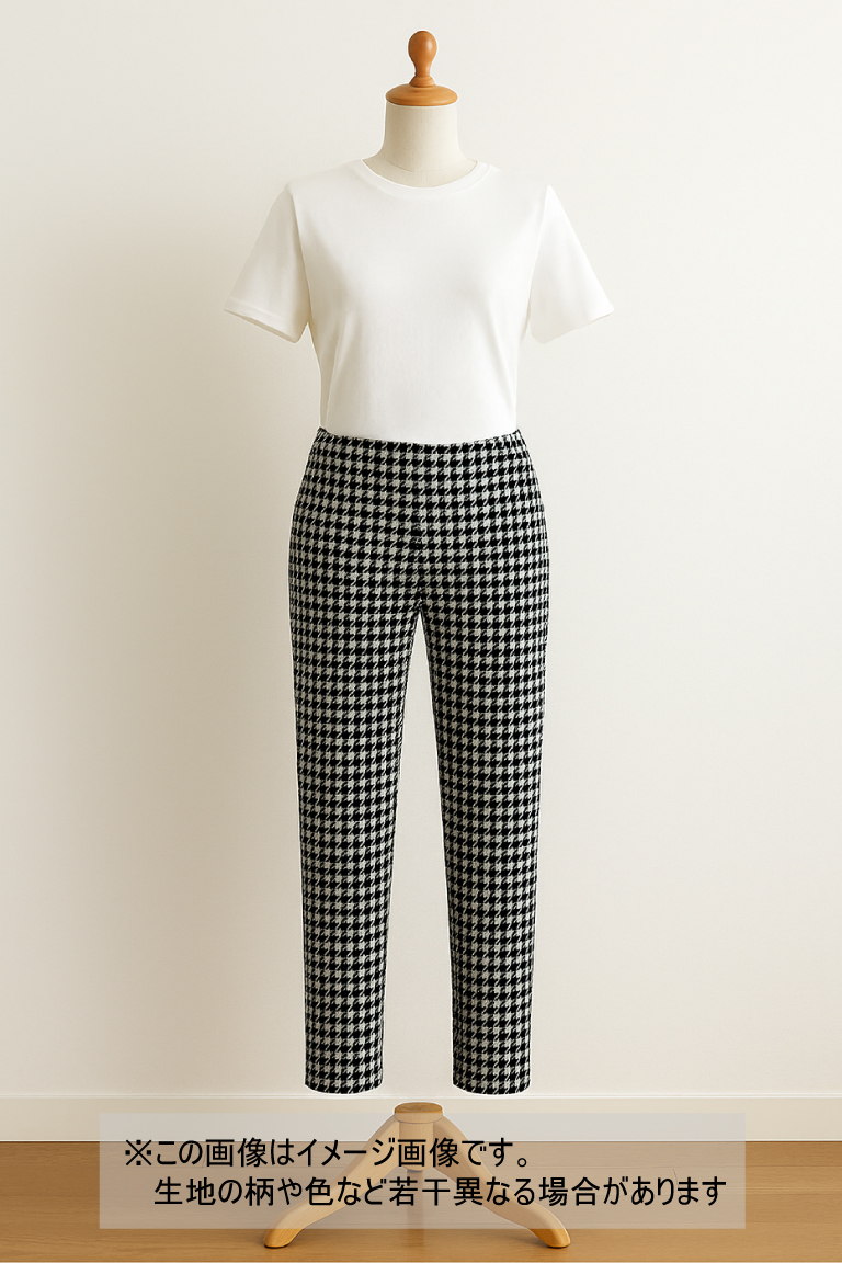 クラシックな千鳥格子柄をモダンに仕上げた、横方向にしっかり伸びる2WAYストレッチ生地です。
