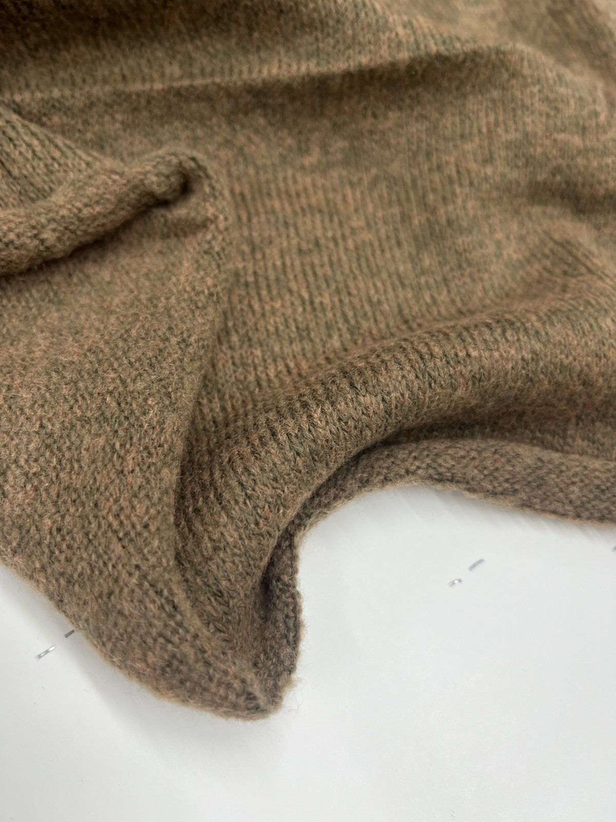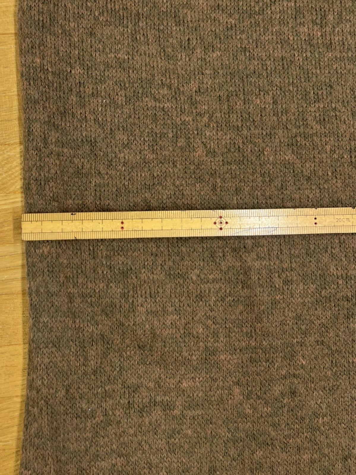 あたたかみのある茶系を基調に、杢調のニュアンスが柔らかな陰影を生み出すポリエステルニットです。