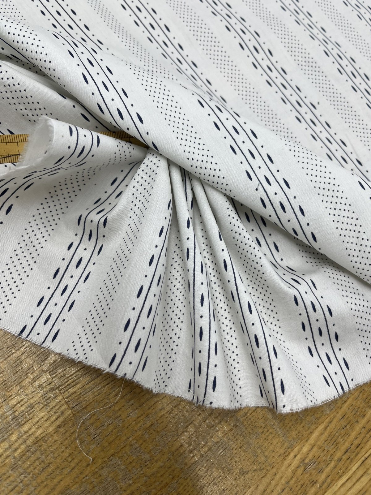 生地:綿プリント ストライプドット(白×濃紺) [kiji-3140]