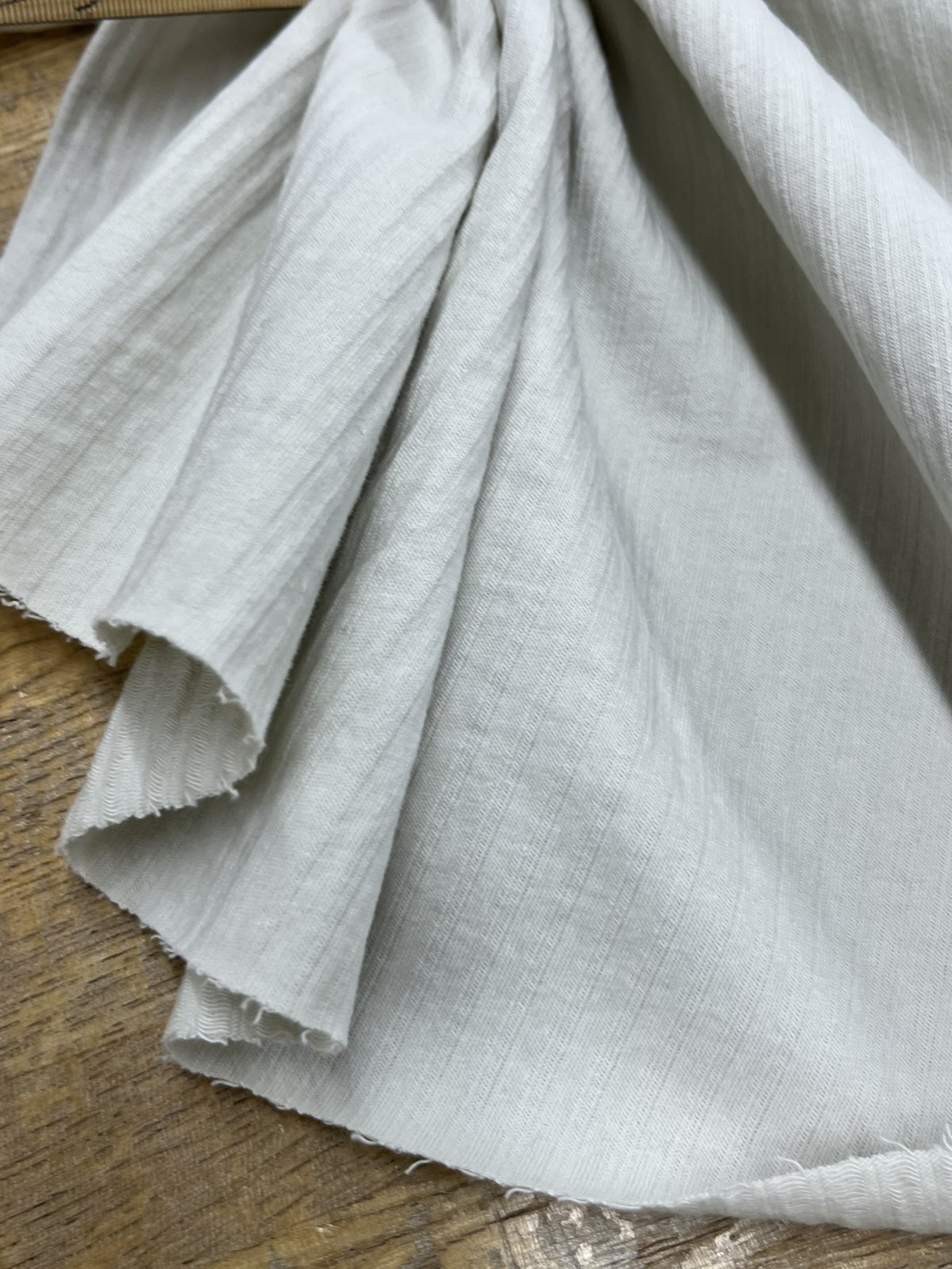 中厚でしっかり感があり、透け感はありません。横方向にやや伸縮性があり、体の動きにほどよくなじみます。