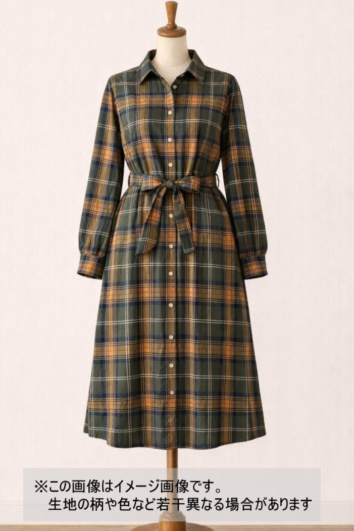 生地:綿100% チェック柄(カーキ/オレンジ)