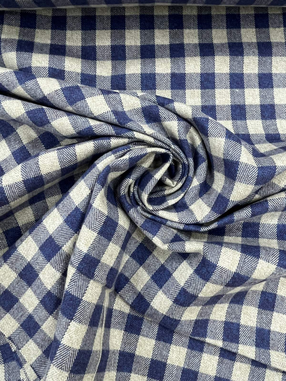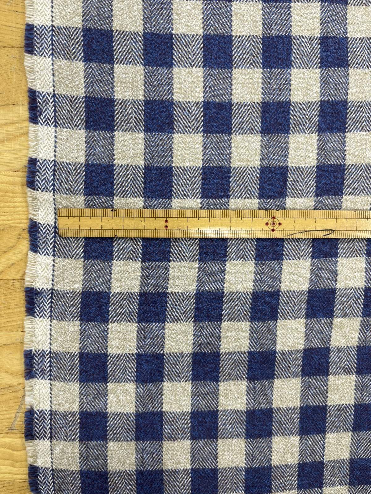 生地:綿100%先染め綿麻キャンバスチェック柄(生成×紺)