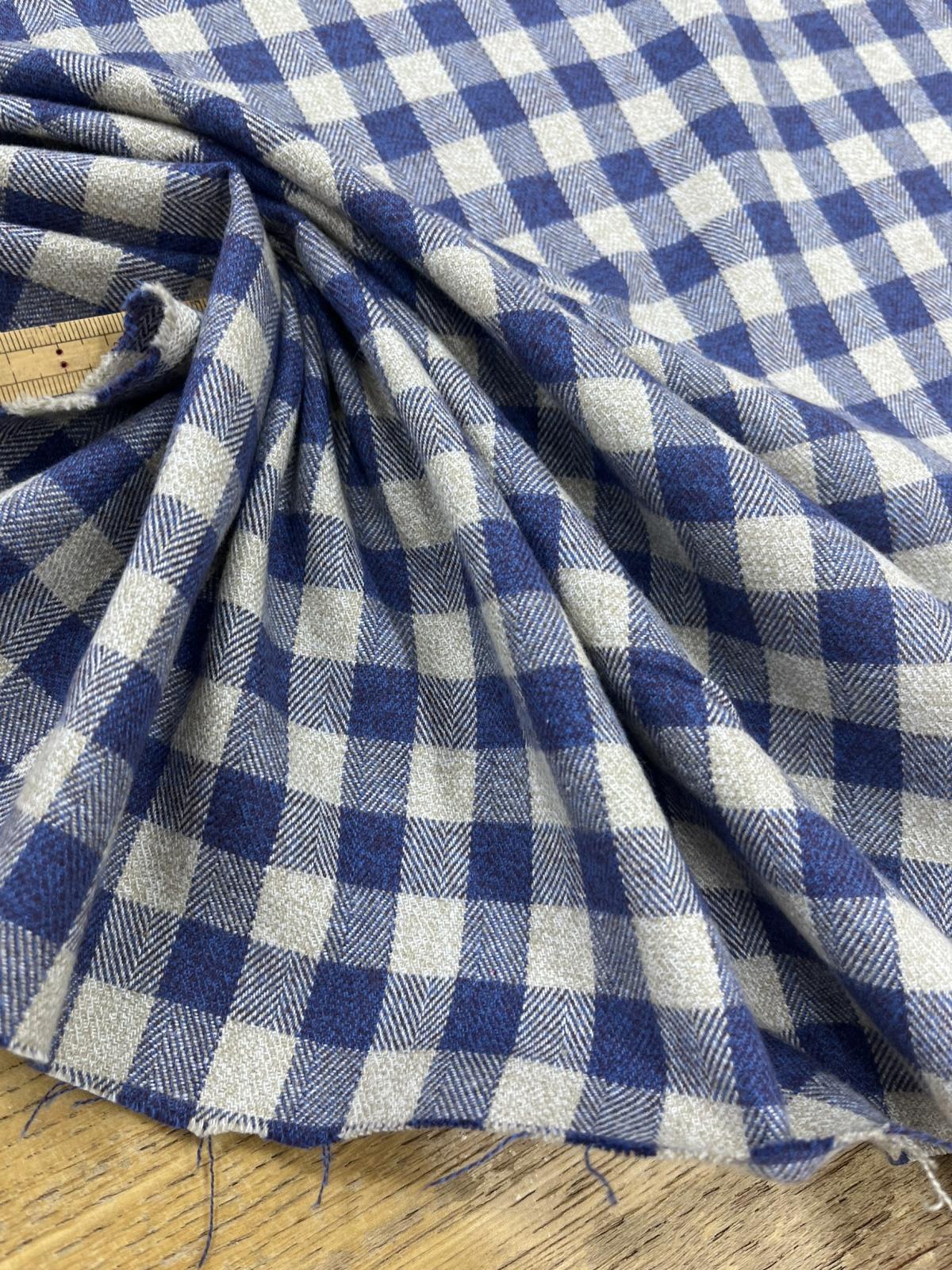 生地:綿100%先染め綿麻キャンバスチェック柄(生成×紺) [kiji-3183]