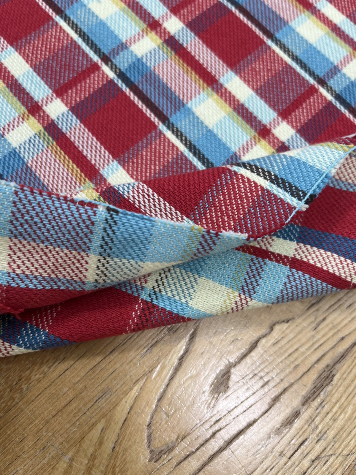 生地:綿100%ヘビーツイルチェック柄(レッド×ブルー)