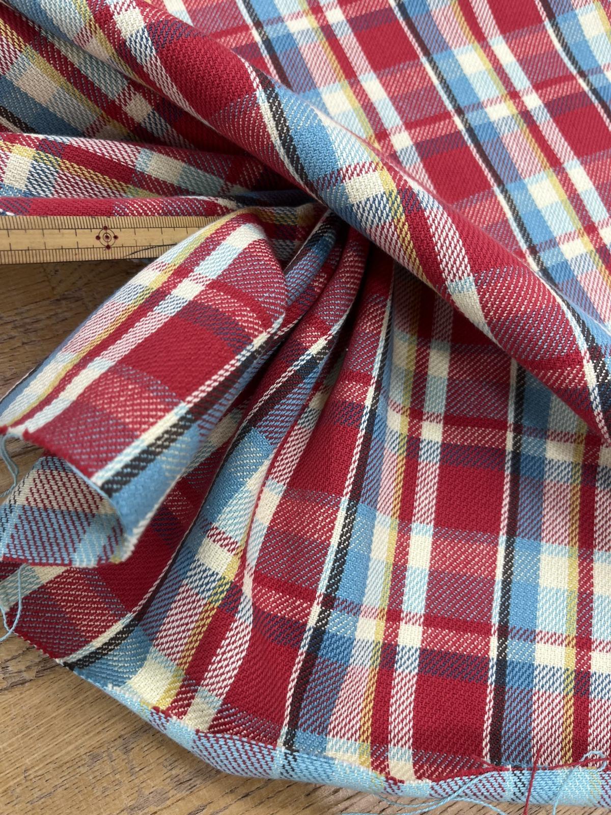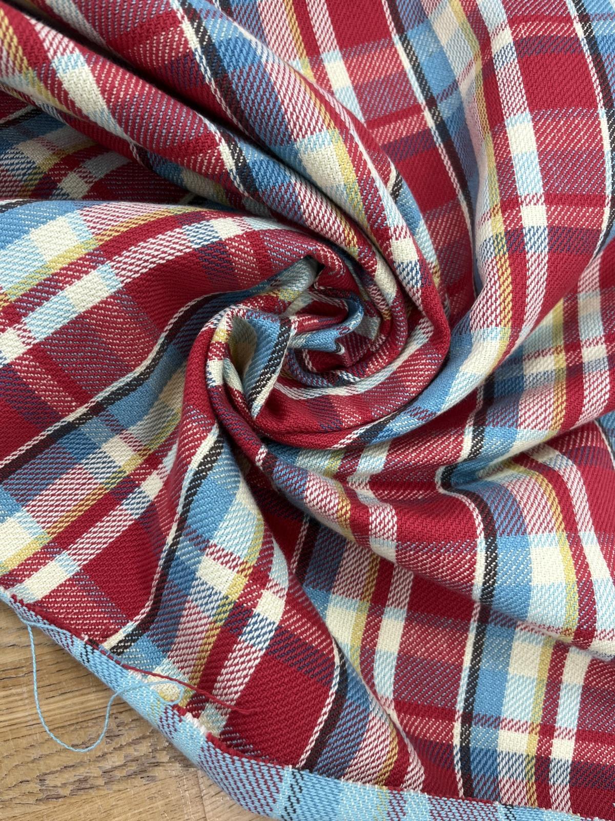 生地:綿100%ヘビーツイルチェック柄(レッド×ブルー) [kiji-3172]