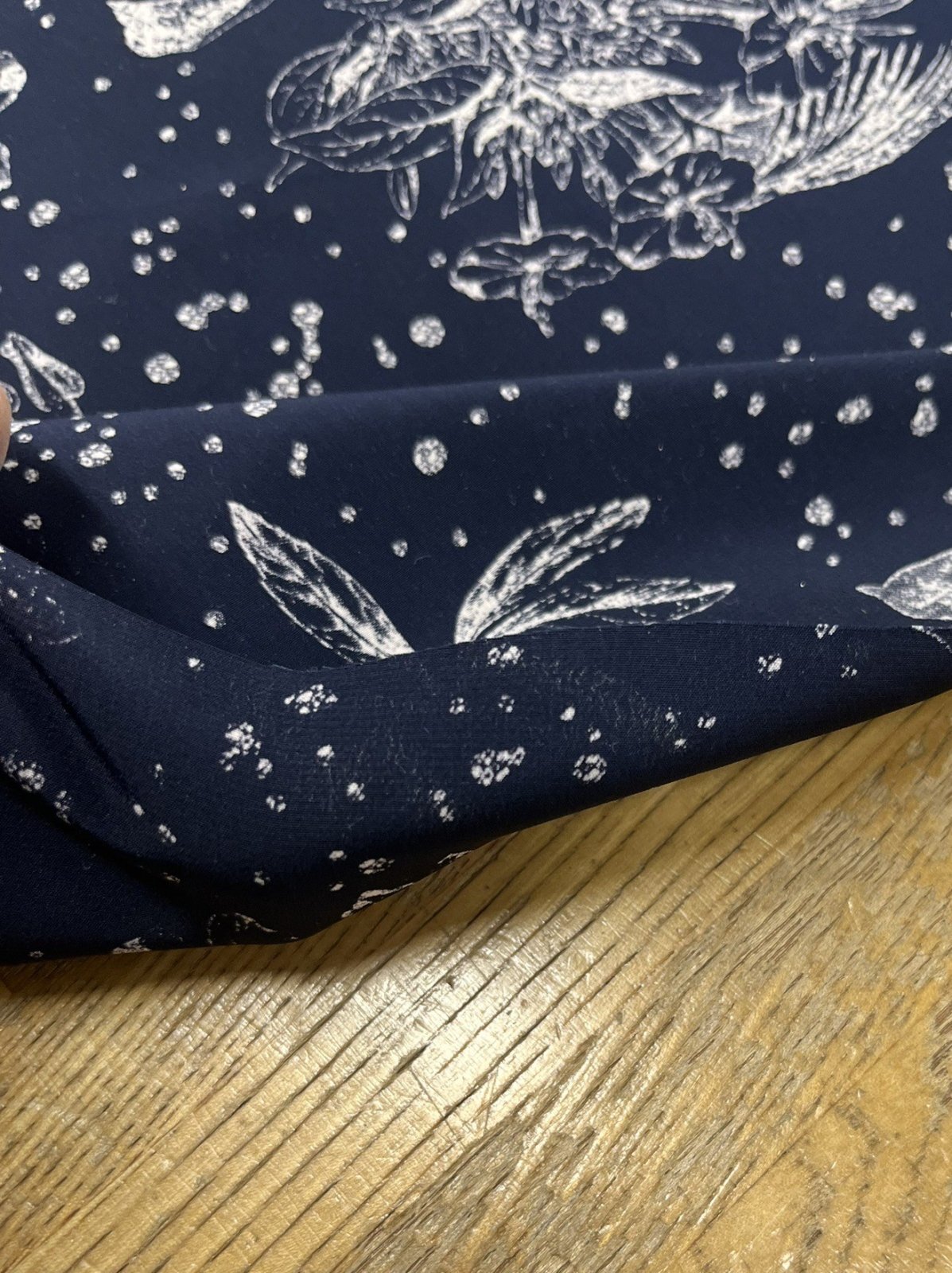 生地:ニュービーナス糸ポリエステルデシン花柄(紺/白)