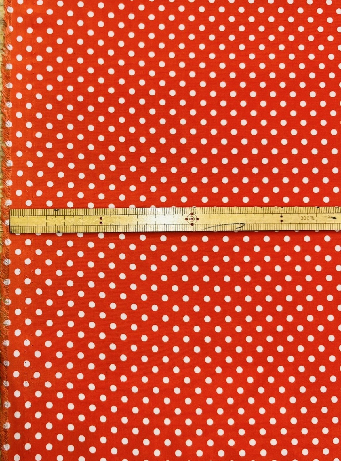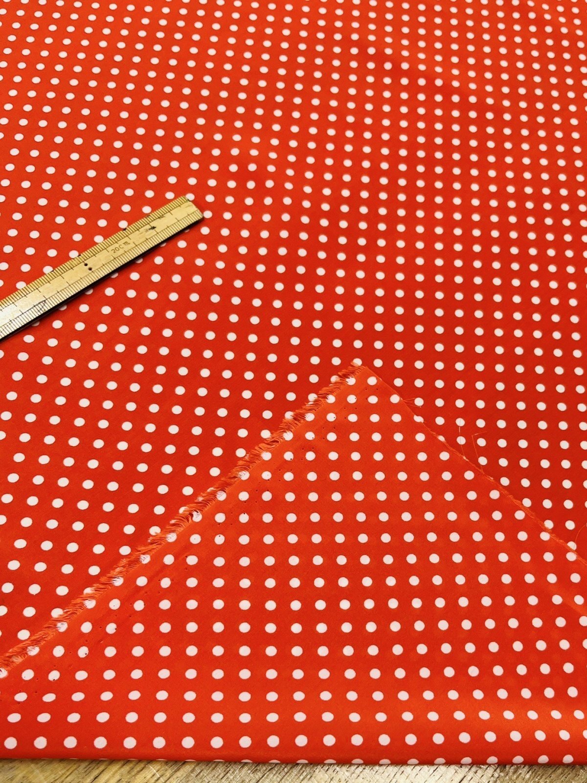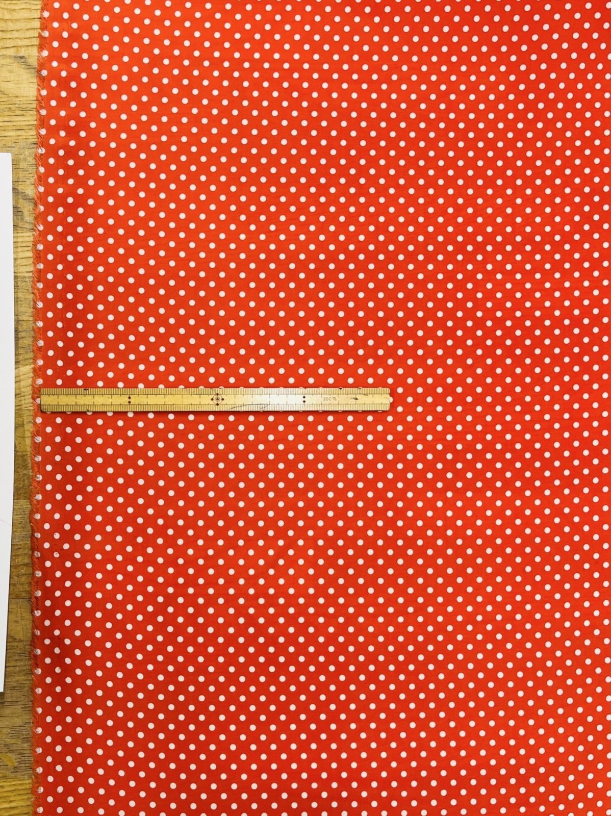 生地:ポリエステルデシン/ドットプリント(レッド×ホワイト) [kiji-3186]