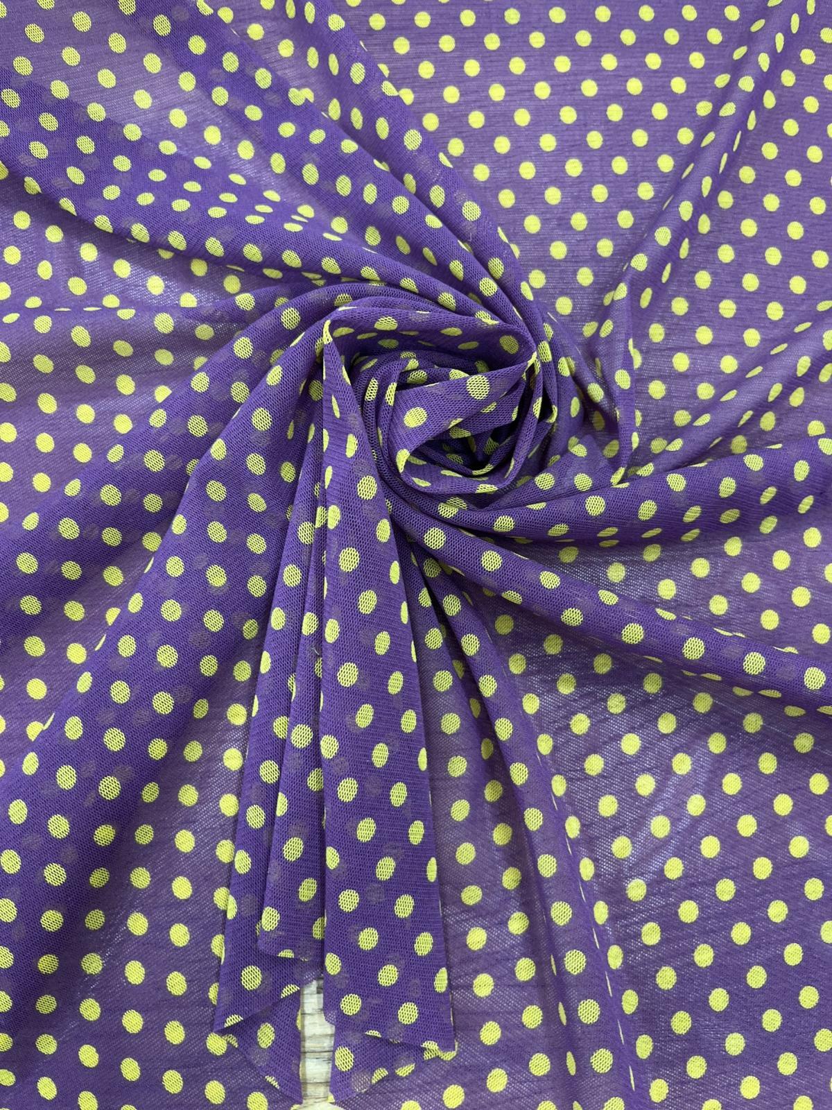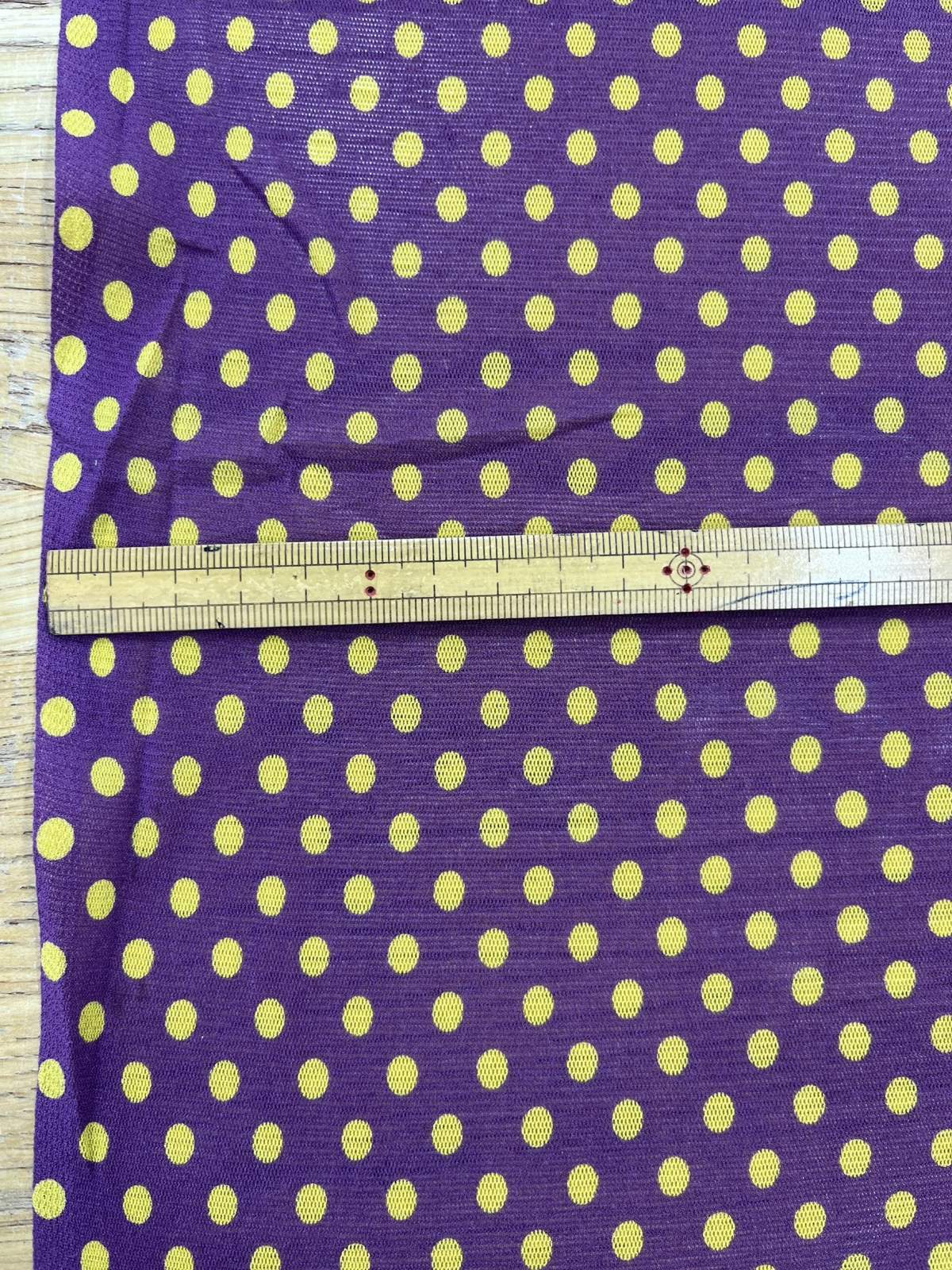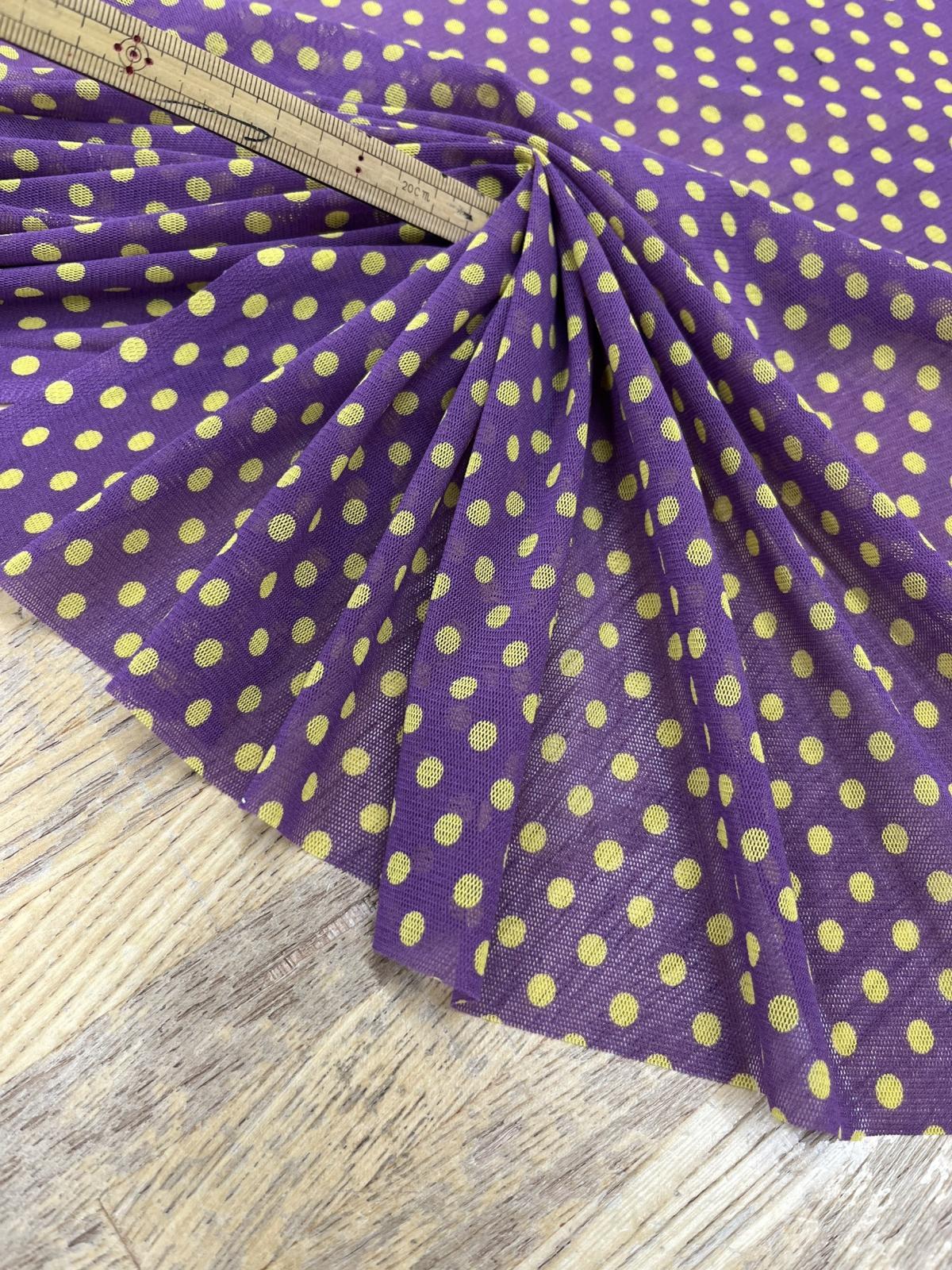 生地:ポリエステル 水玉プリントチュール(パープル×イエロー)
