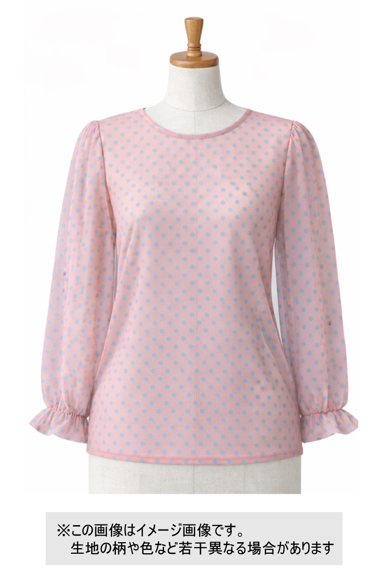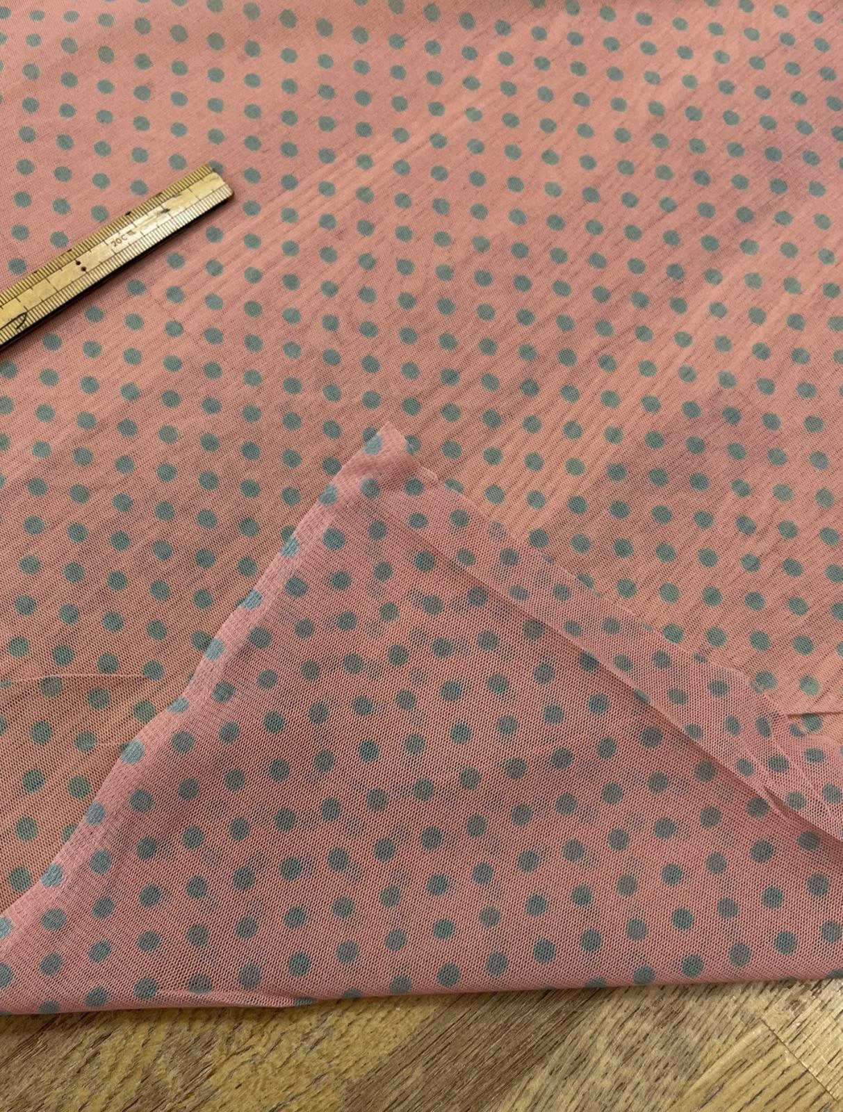 生地:ポリエステル 水玉プリントチュール(ピンク×水色)