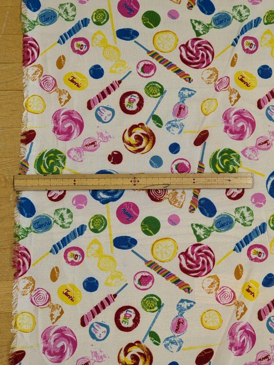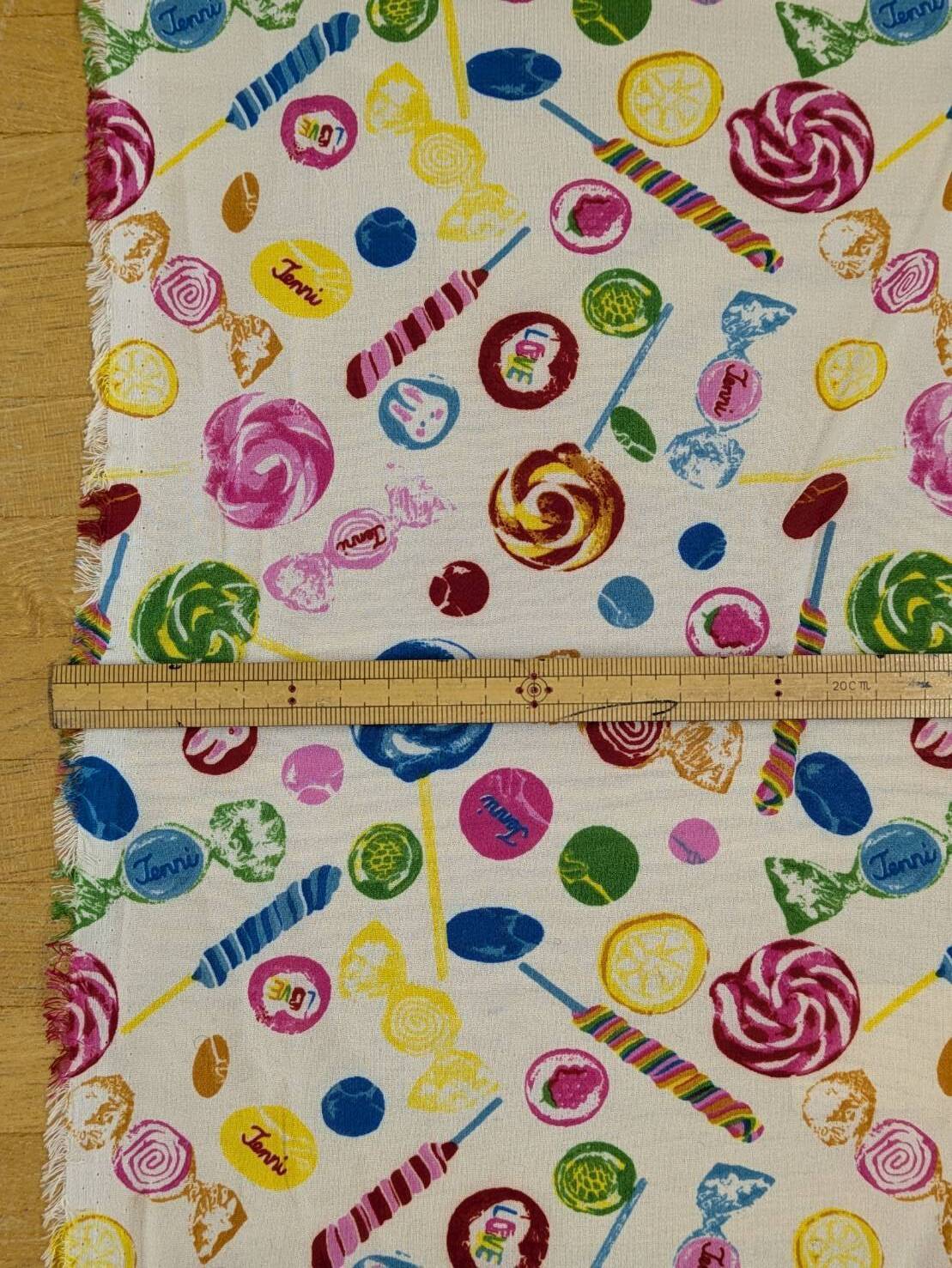 ポップで可愛らしいキャンディモチーフを散りばめた、遊び心のあるプリント生地です。