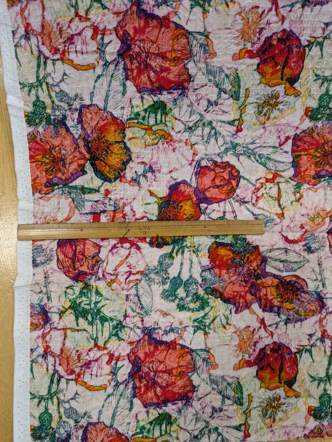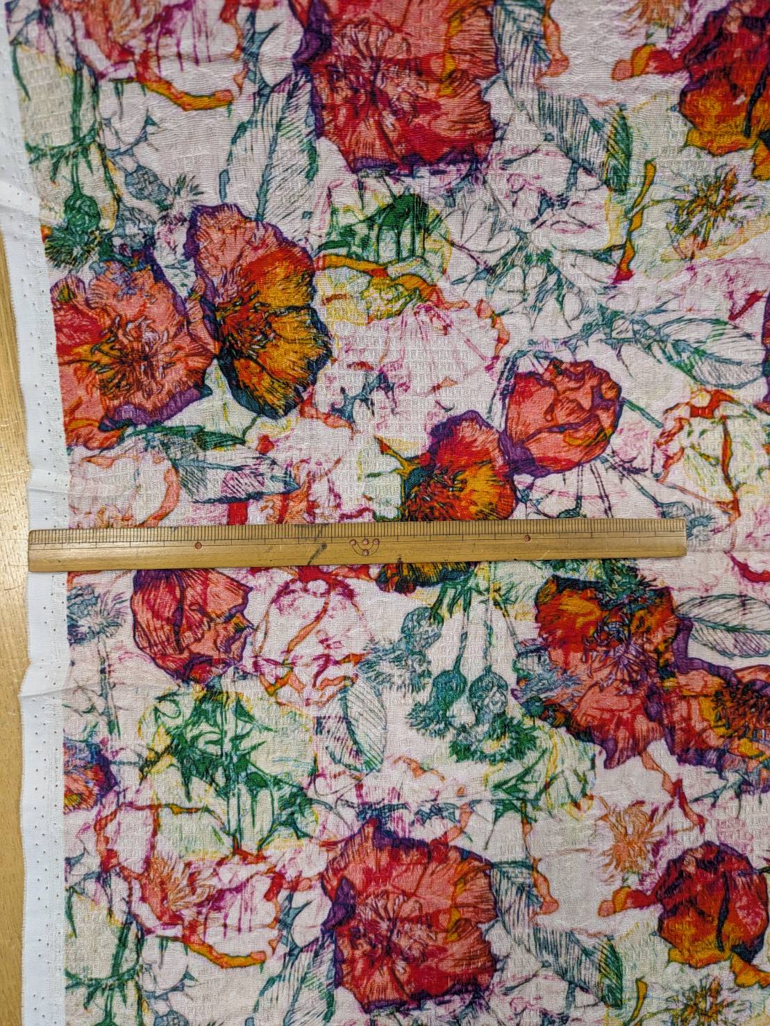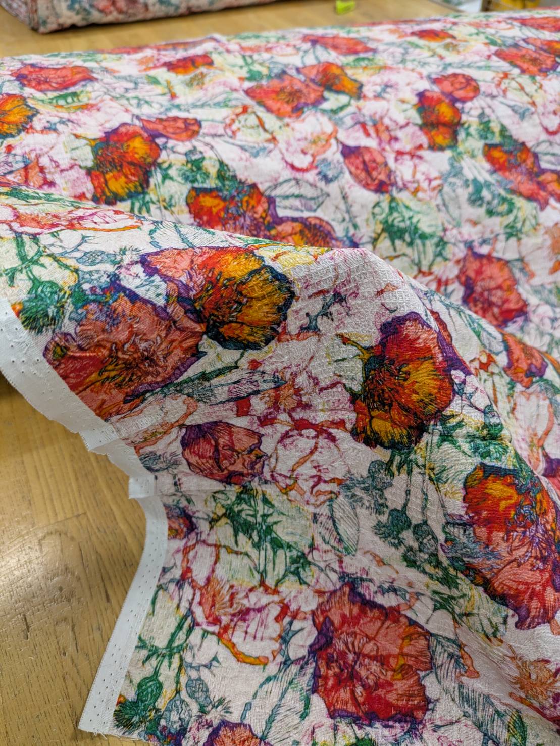 生地:綿100%ジャガード フラワープリント(キナリ×赤×オレンジ×緑)