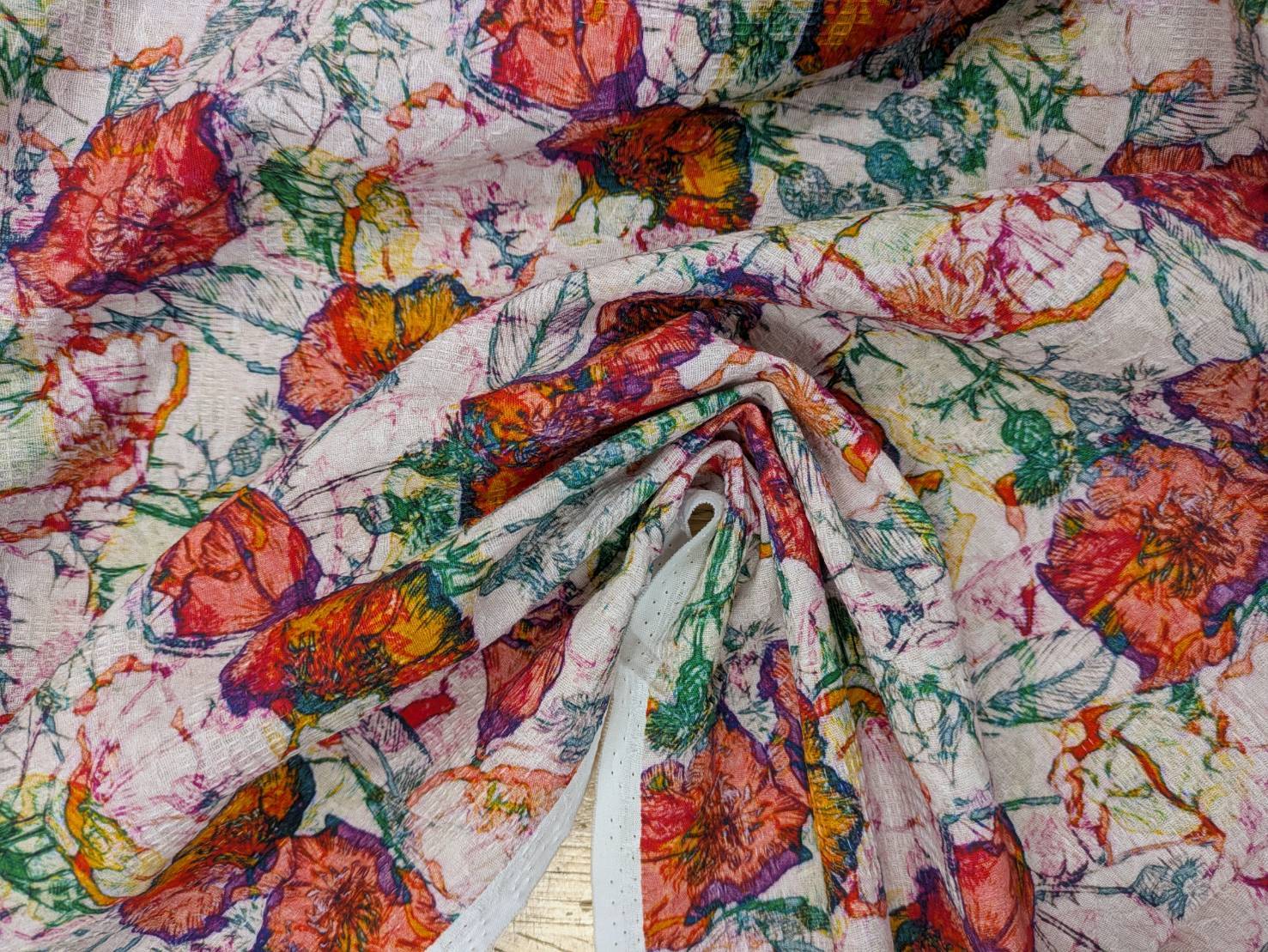 生地:綿100%ジャガード フラワープリント(キナリ×赤×オレンジ×緑) [kiji-3204]