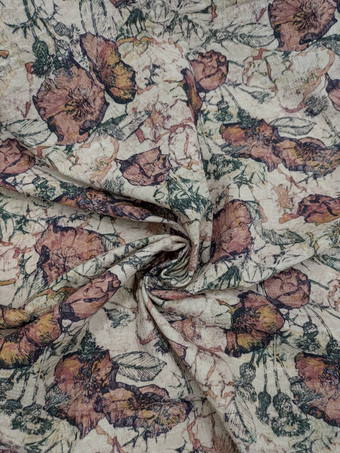 生地:綿100%ジャガード フラワープリント(キナリ×茶×緑)