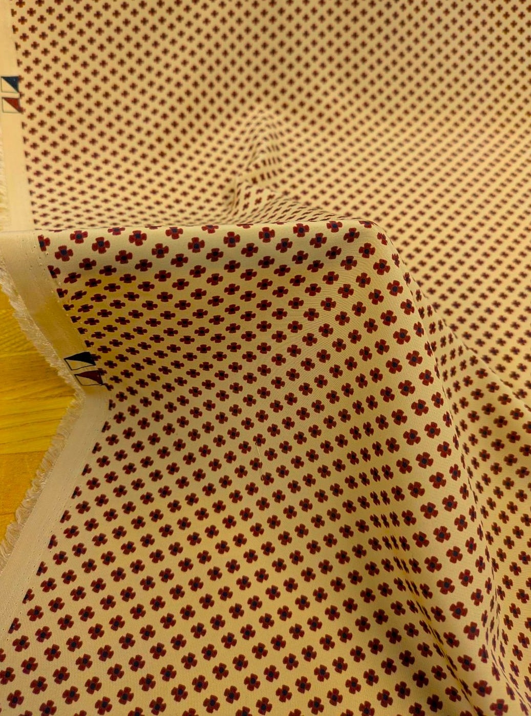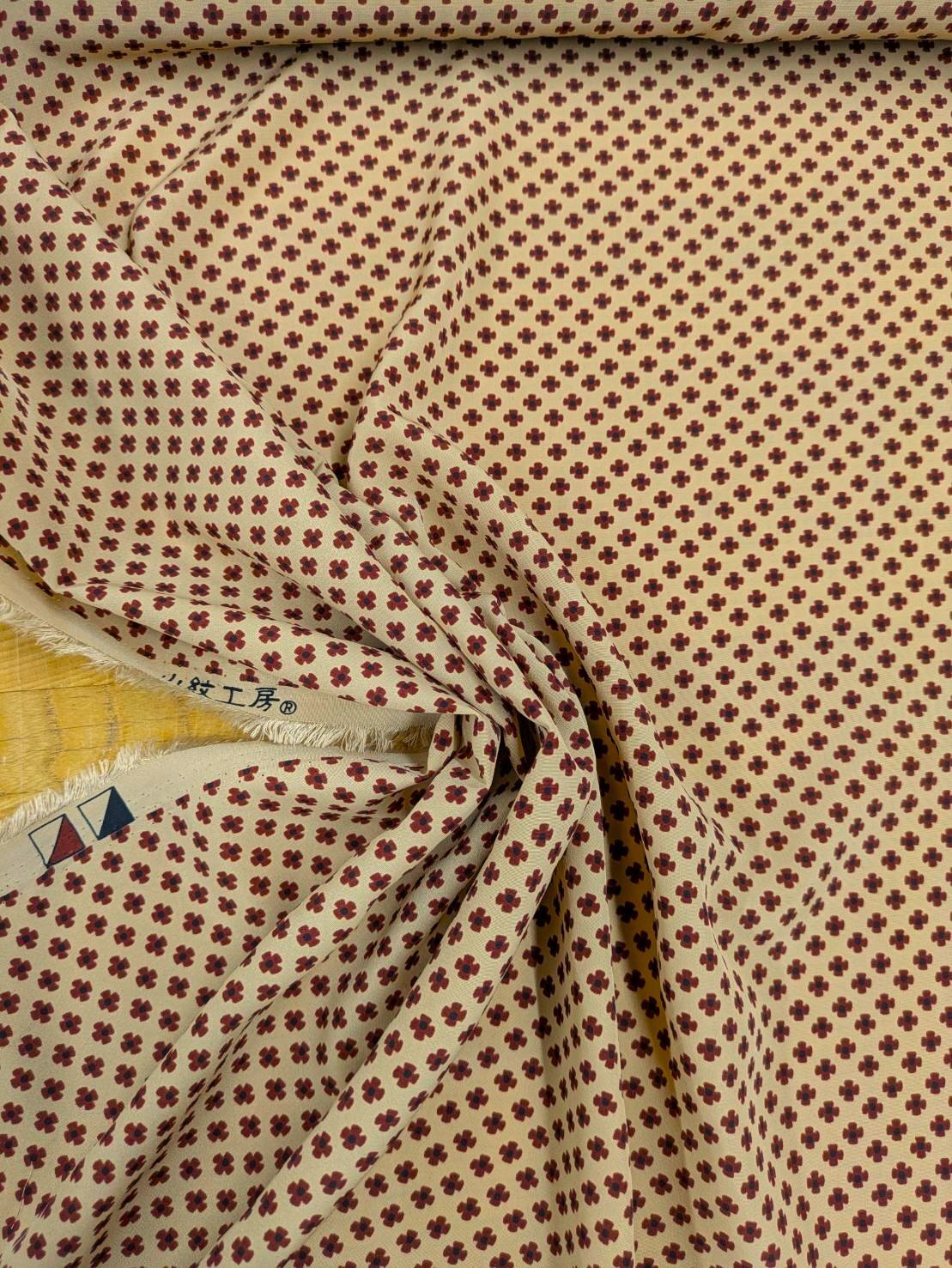 生地:ポリ100%Newヴィーナスデシン小花柄(アイボリー×ボルドー)