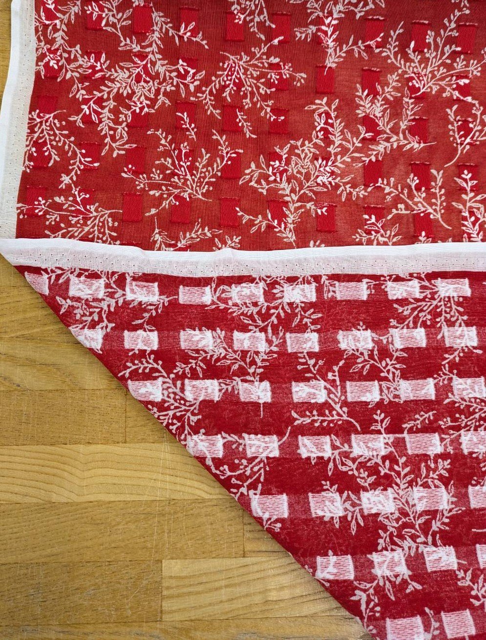 生地:綿100%コシラカットプリント(レッド/アイボリー)
