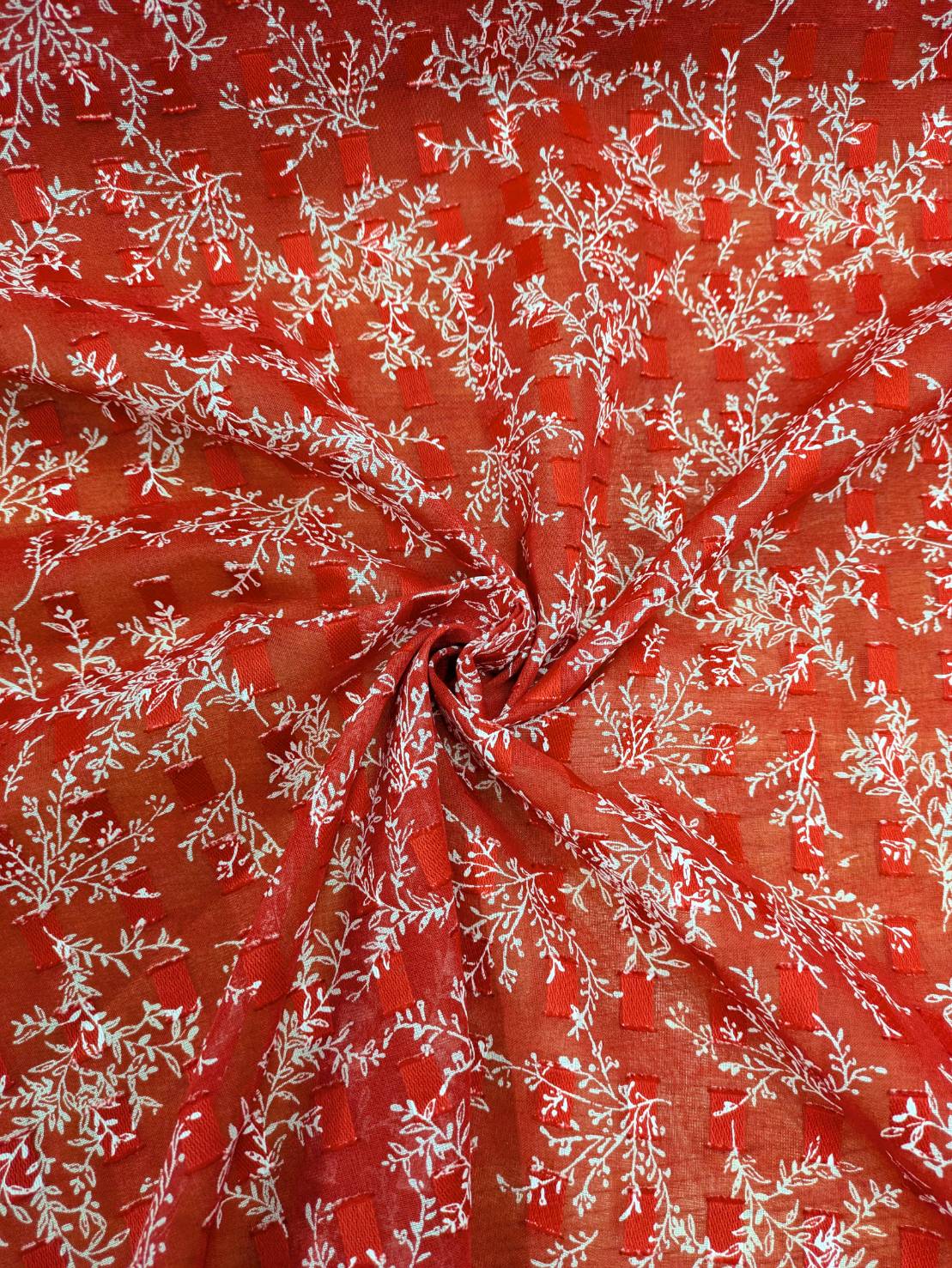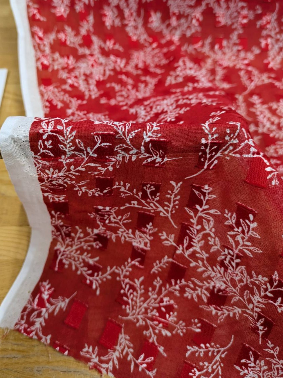 生地:綿100%コシラカットプリント(レッド/アイボリー) [kiji-3219]