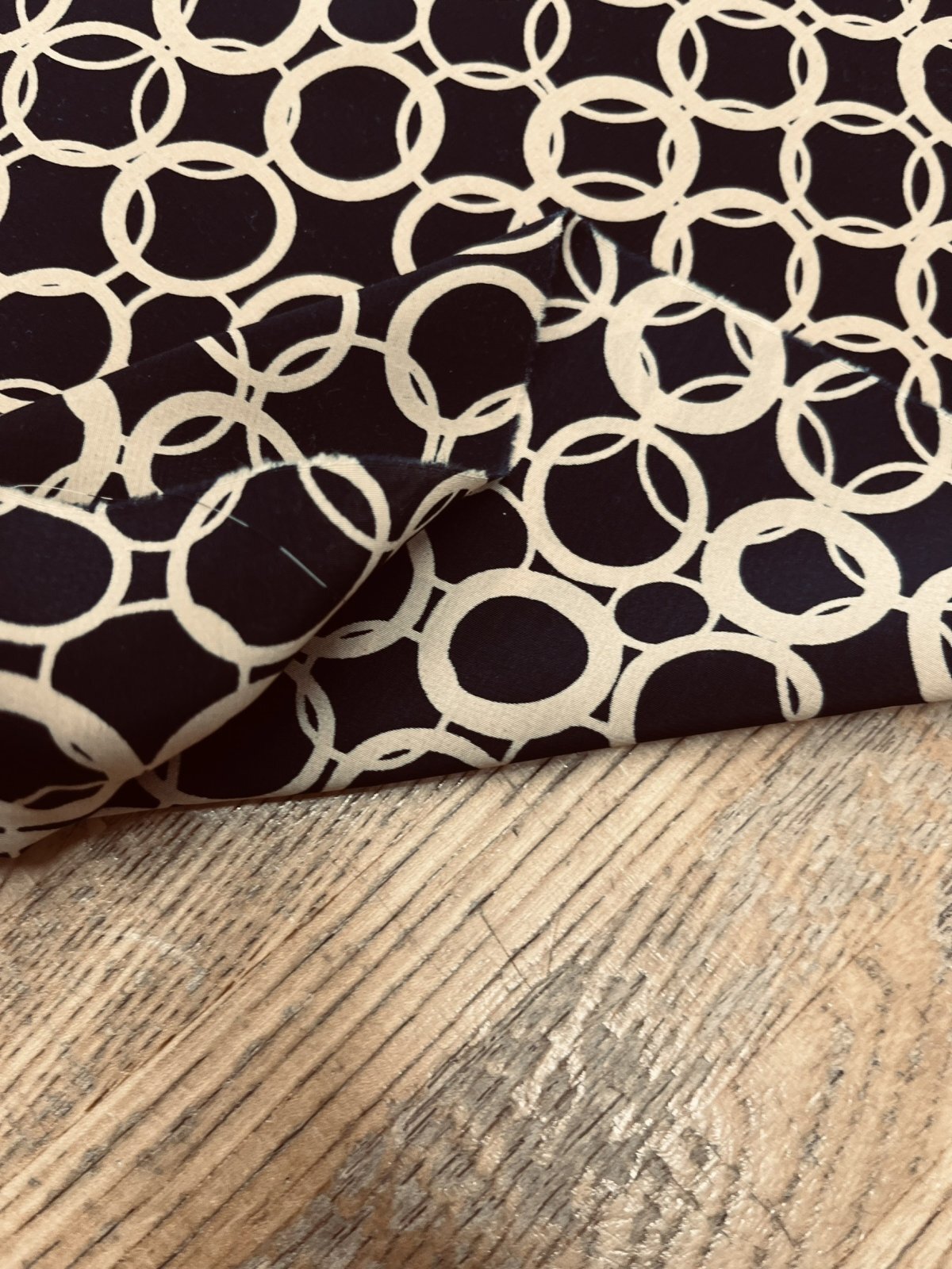 生地:ポリエステル100%Newヴィーナスデシンリング柄(濃紺×ベージュ)