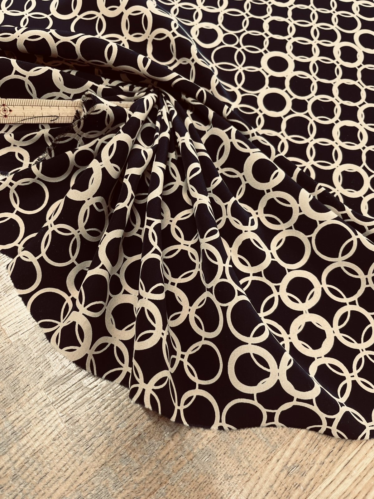 生地:ポリエステル100%Newヴィーナスデシンリング柄(濃紺×ベージュ) [kiji-3225]