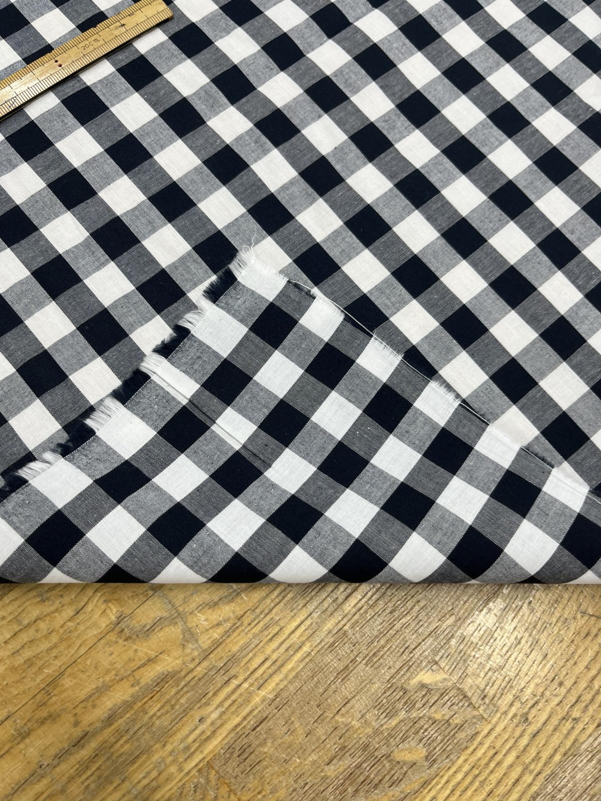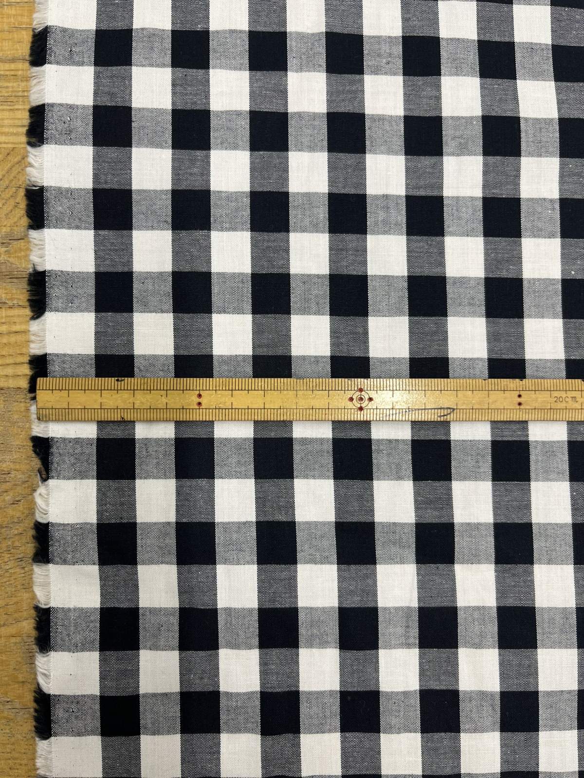 綿100%のブロックチェック生地。約13mm角のチェック柄で、程よい存在感がありながらも使いやすいベーシックなサイズ感です。