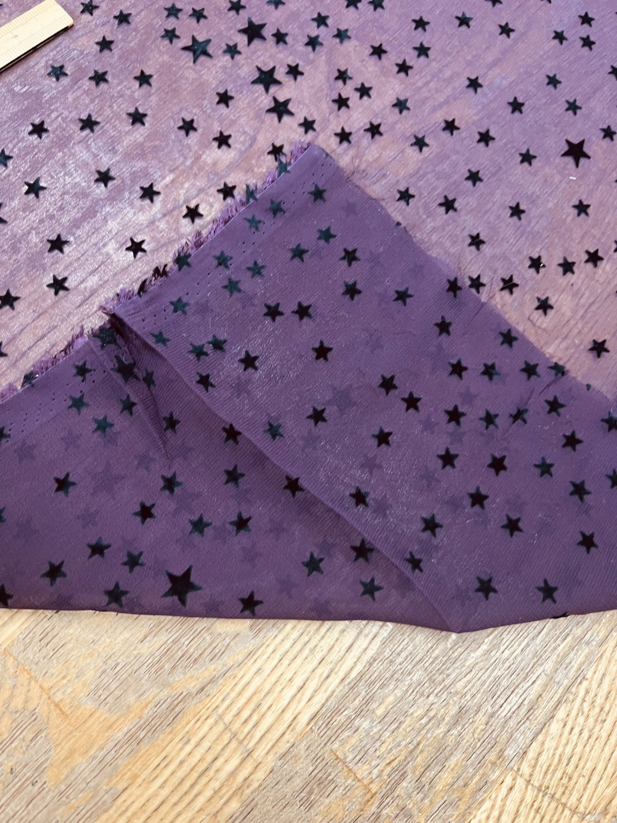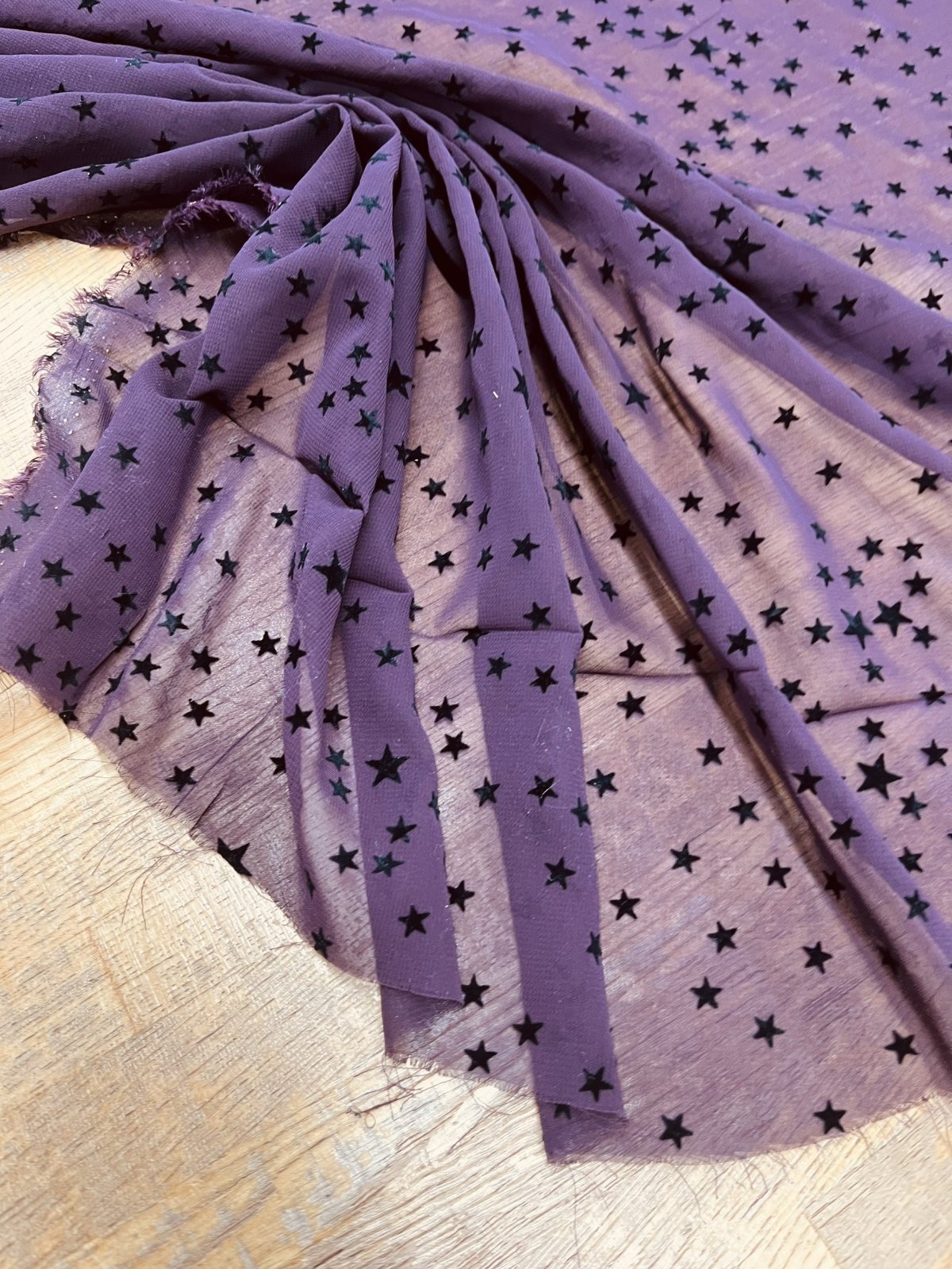 生地:ポリエステル100%星柄フロッキーシフォン(ボルドー)