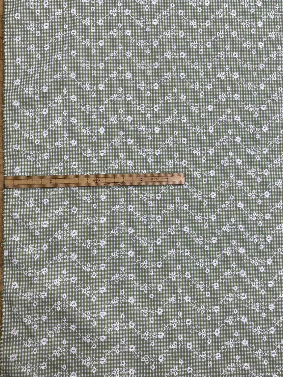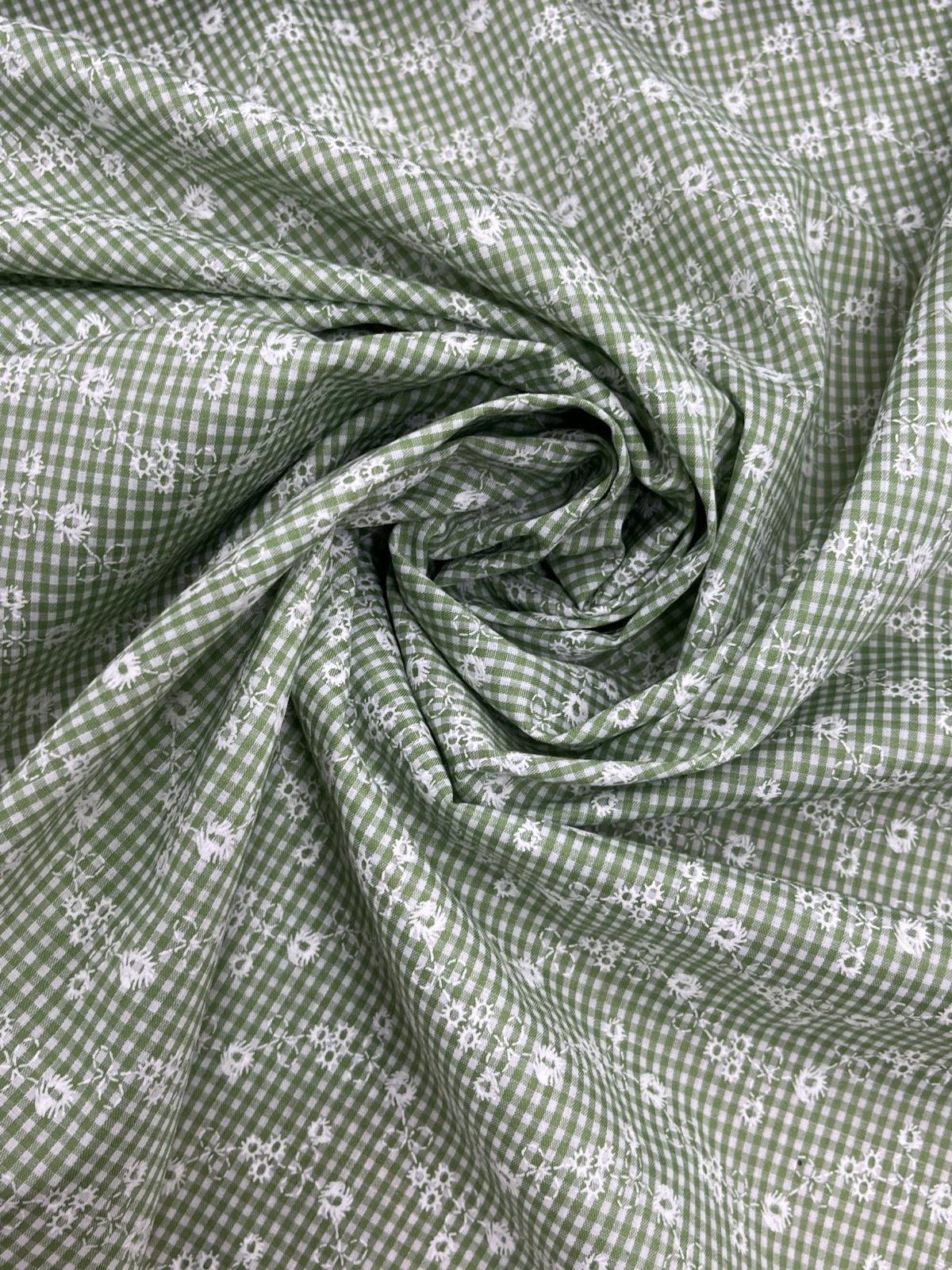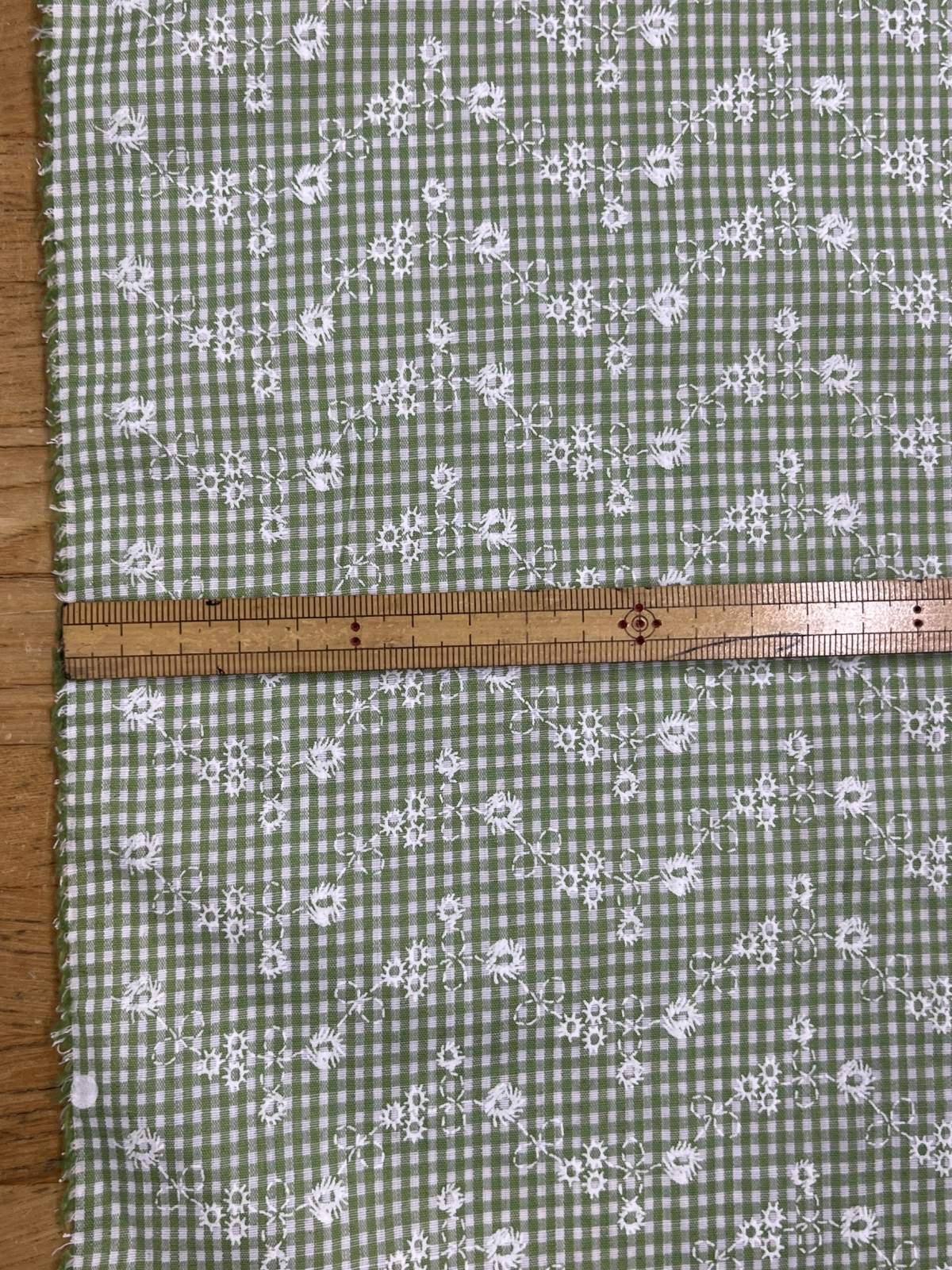 生地:綿100%小花柄刺繍風プリント ギンガムチェック(グリーン) [kiji-3245]