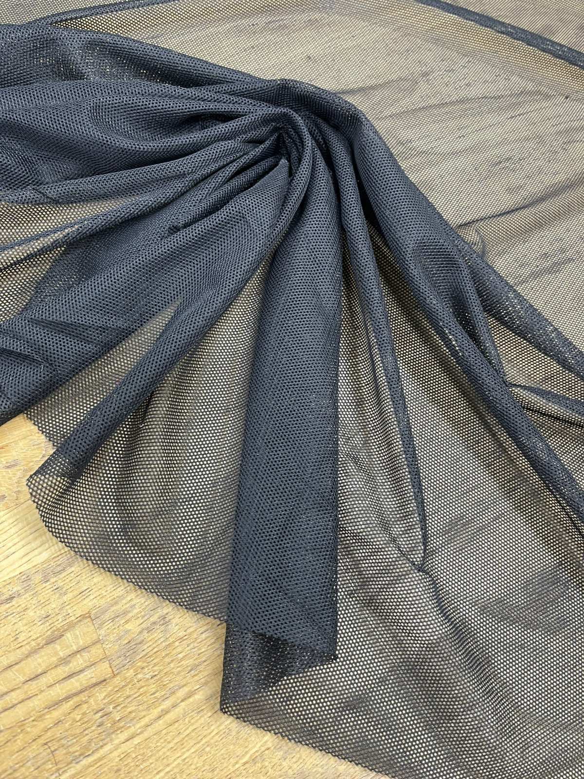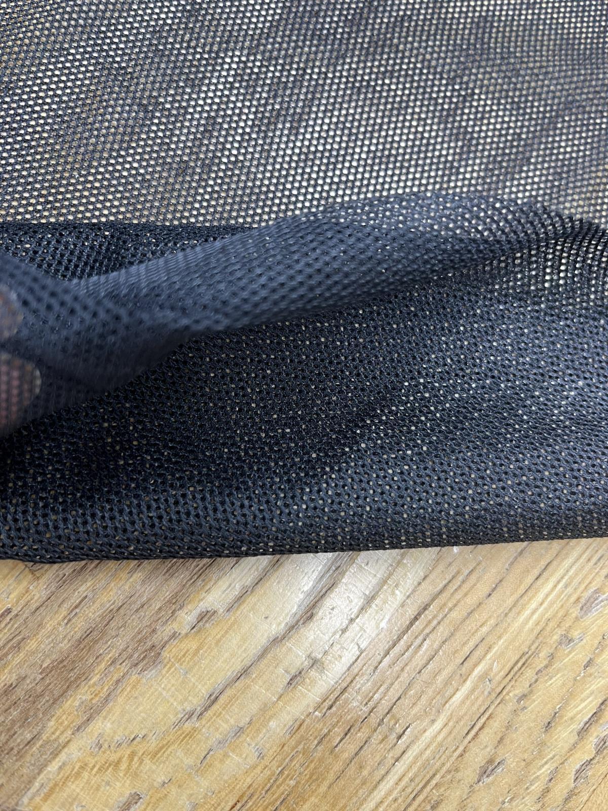 軽やかで通気性のある、ポリエステル100%の黒メッシュ素材です。ほどよくハリのある見た目で、