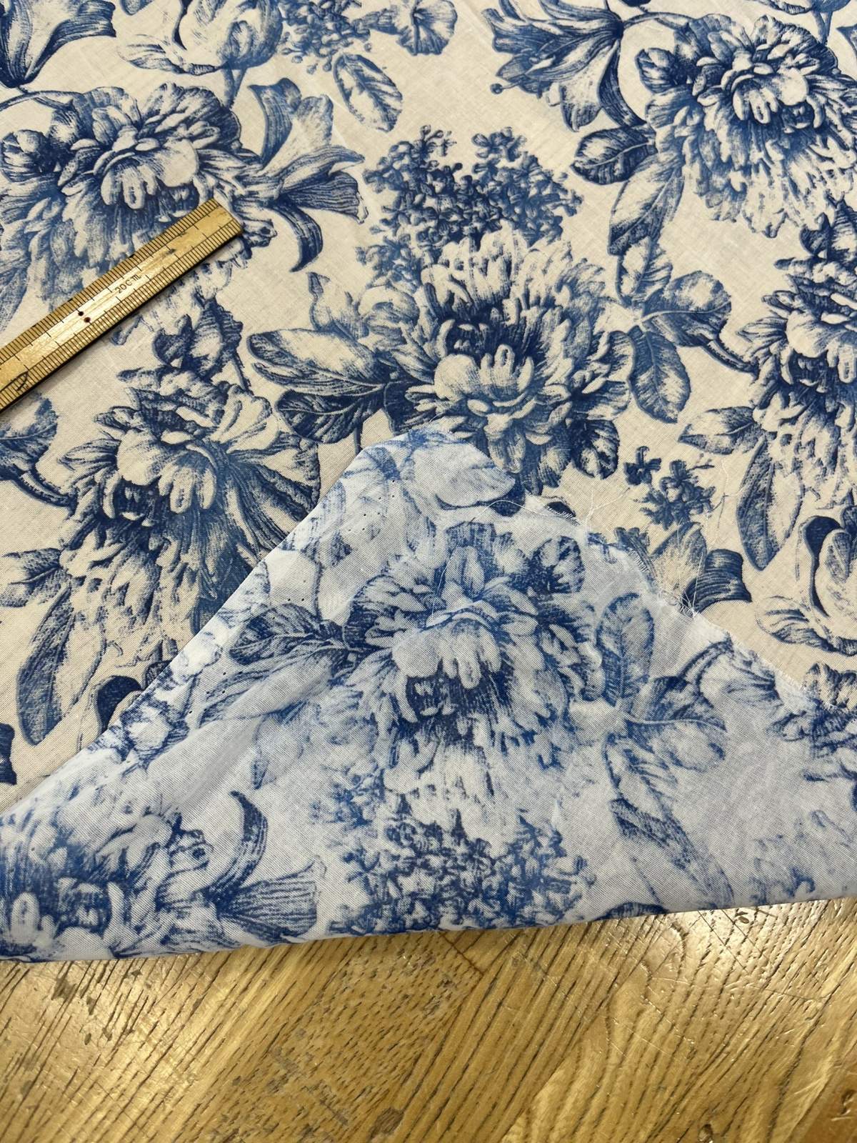 生地: 綿100% 薄手ローン花柄(ホワイト×ブルー)