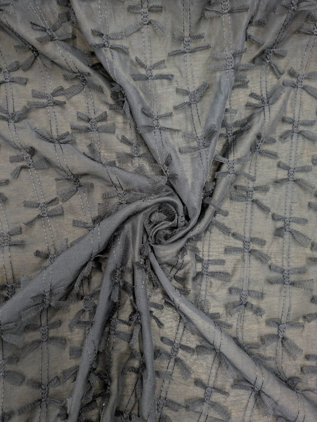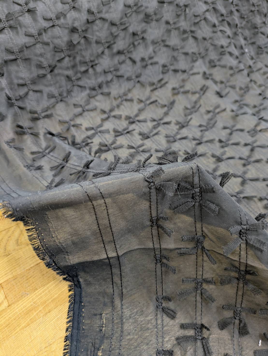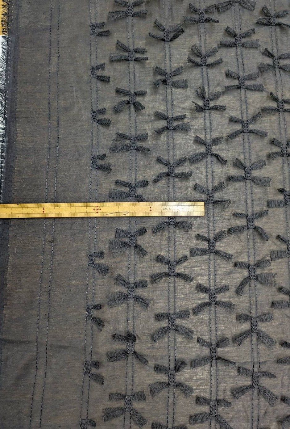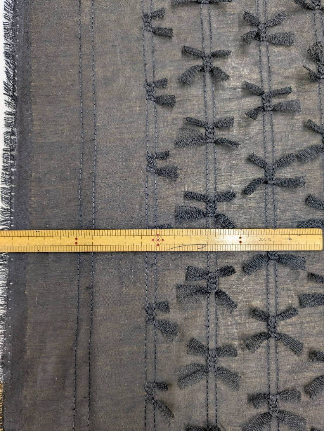 生地:ポリエステル100% シフォンリボン装飾(黒) [kiji-3264]
