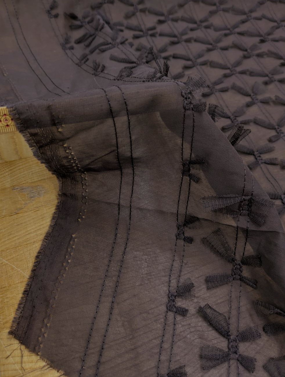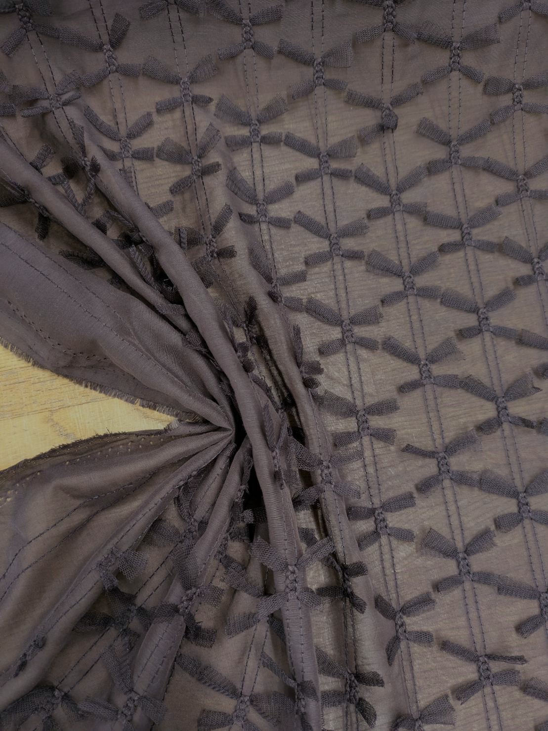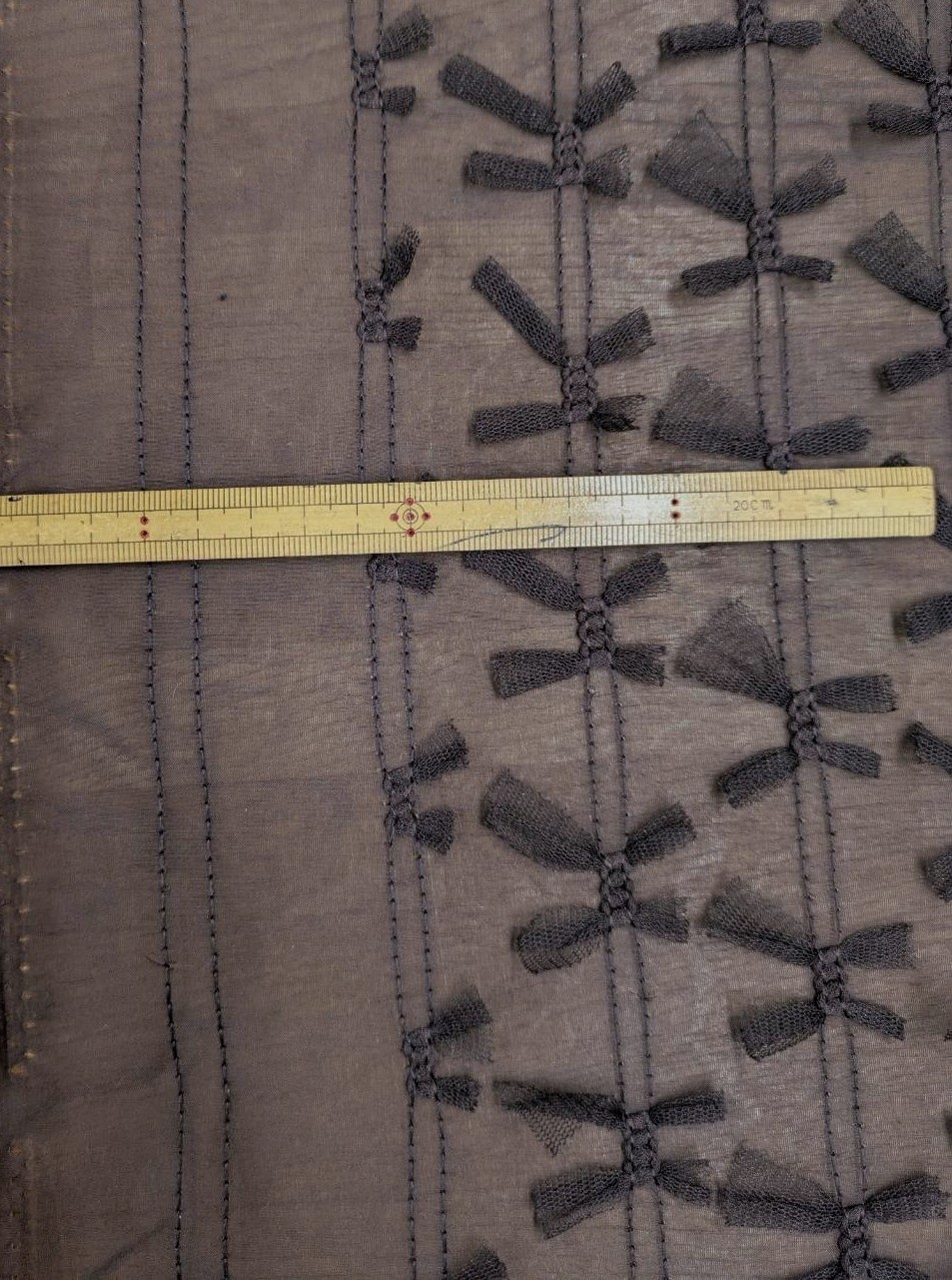 生地:ポリエステル100% シフォンリボン装飾(茶) [kiji-3266]