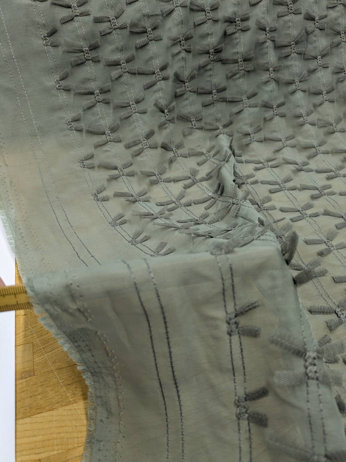 生地:ポリエステル100% シフォンリボン装飾(緑) [kiji-3267]