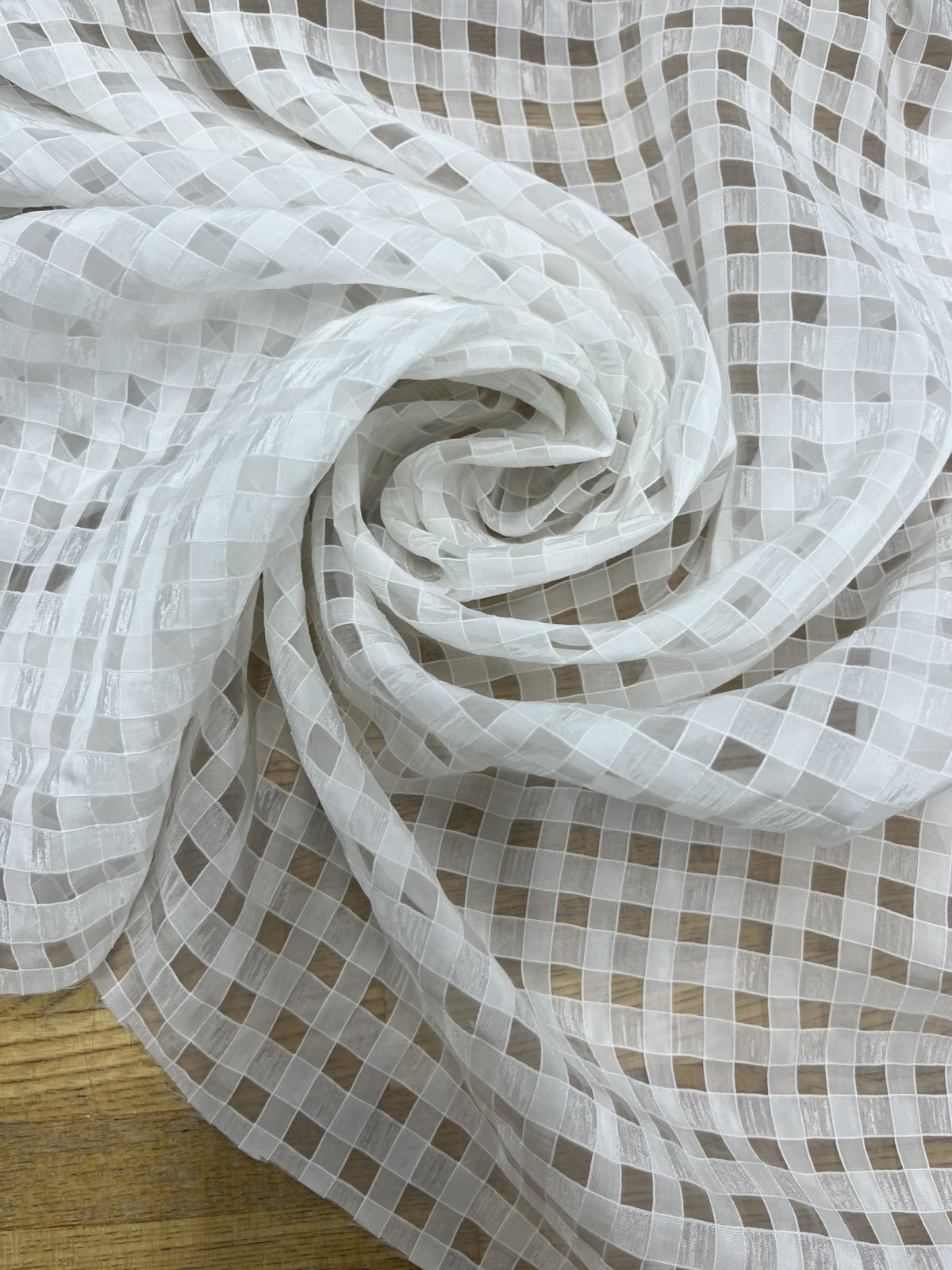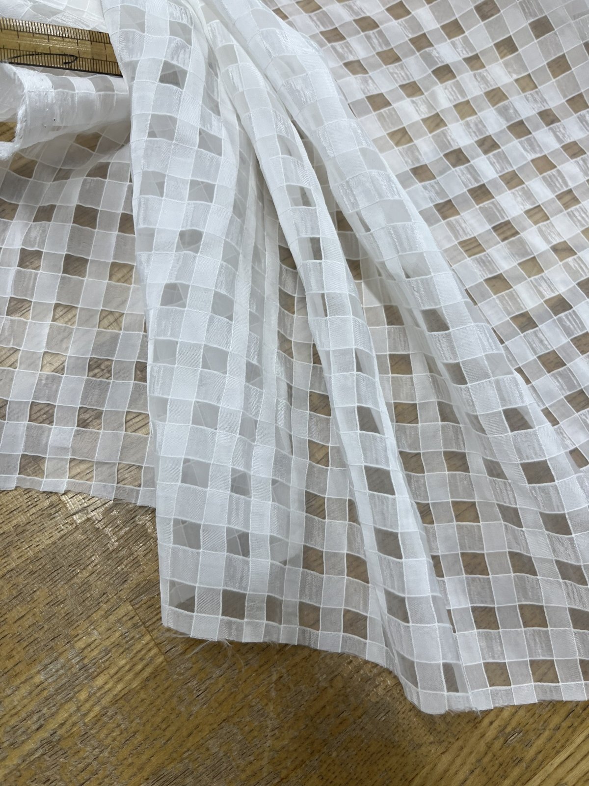生地:ポリエステル100%シアーギンガムチェック(白) [kiji-3277]