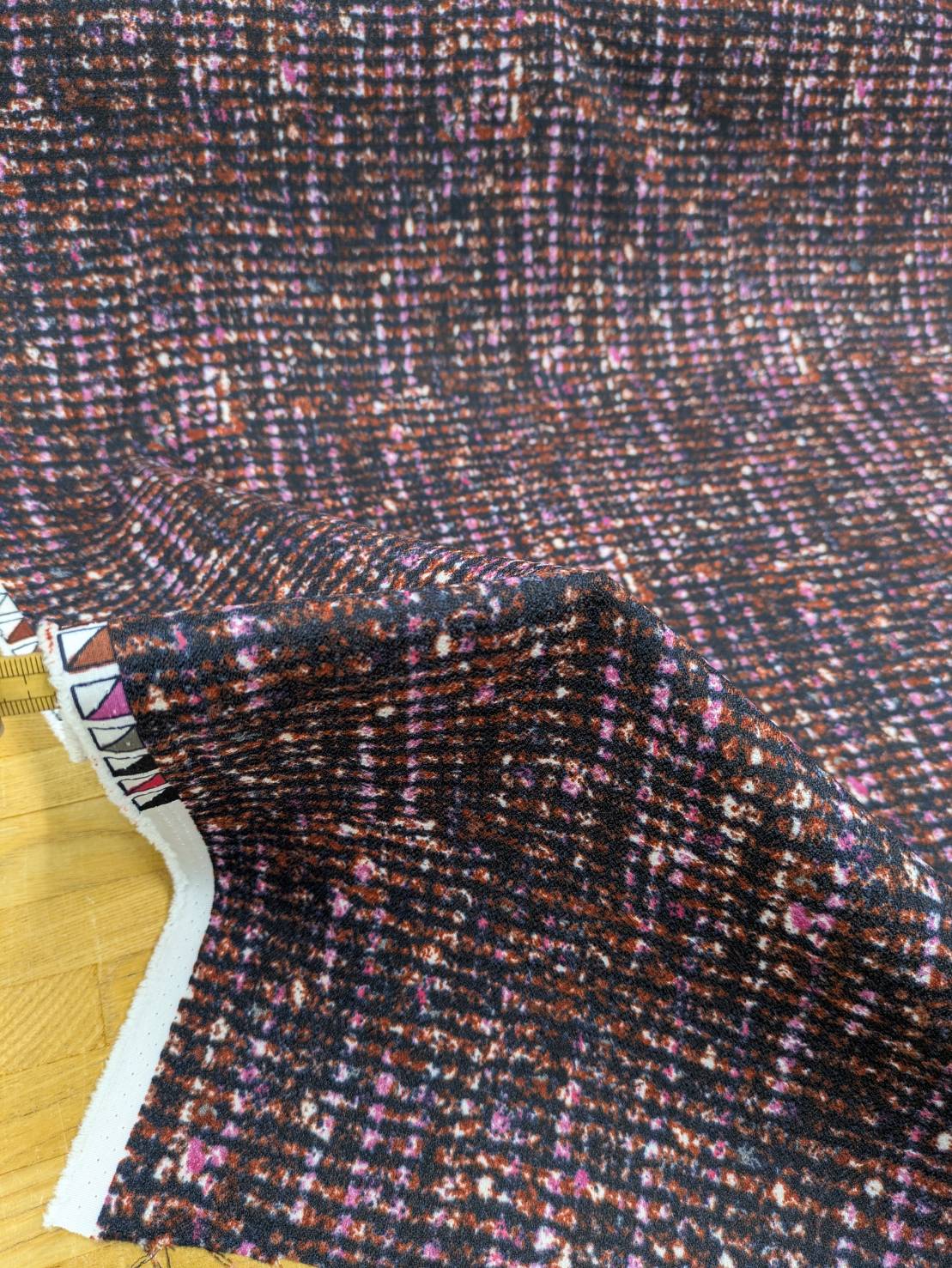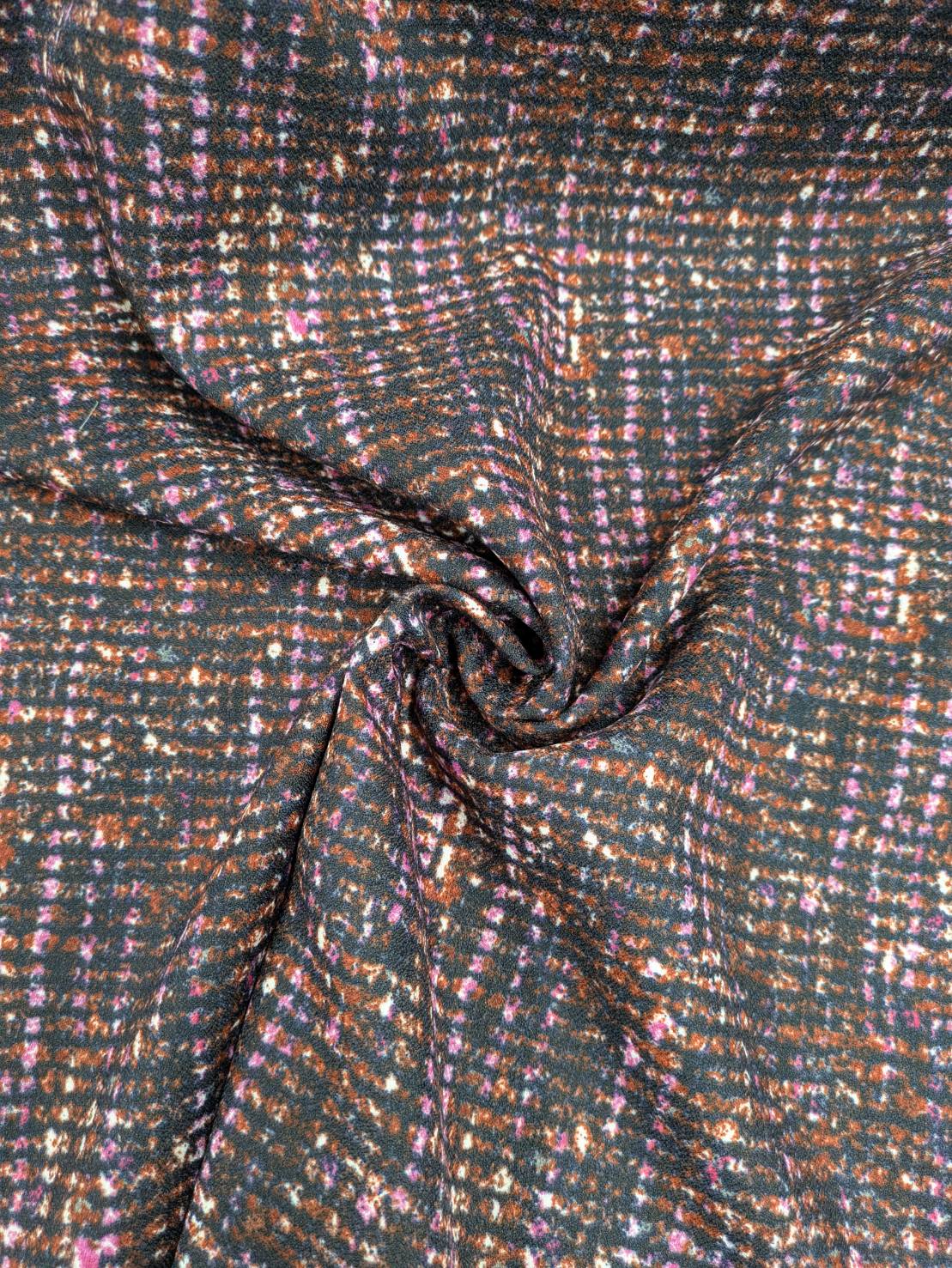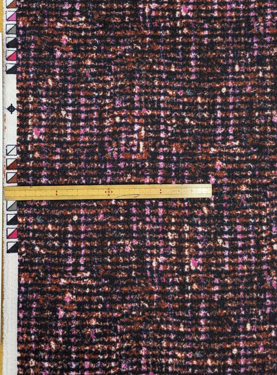 生地:ポリエステル100%ツイード風プリントジョーゼット(レッドブラウン系) [kiji-3285]
