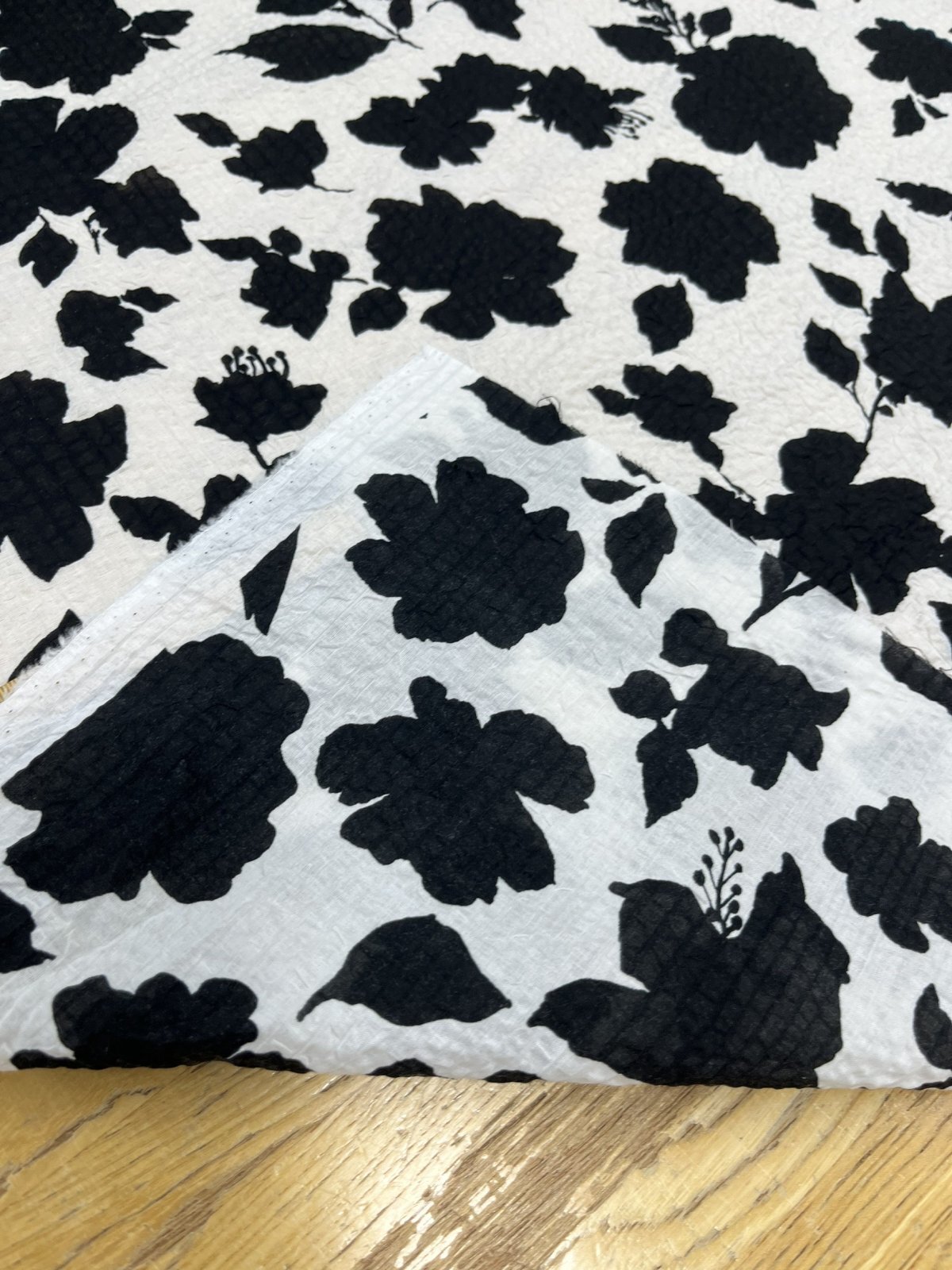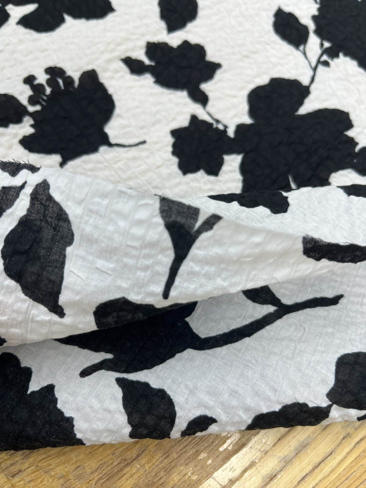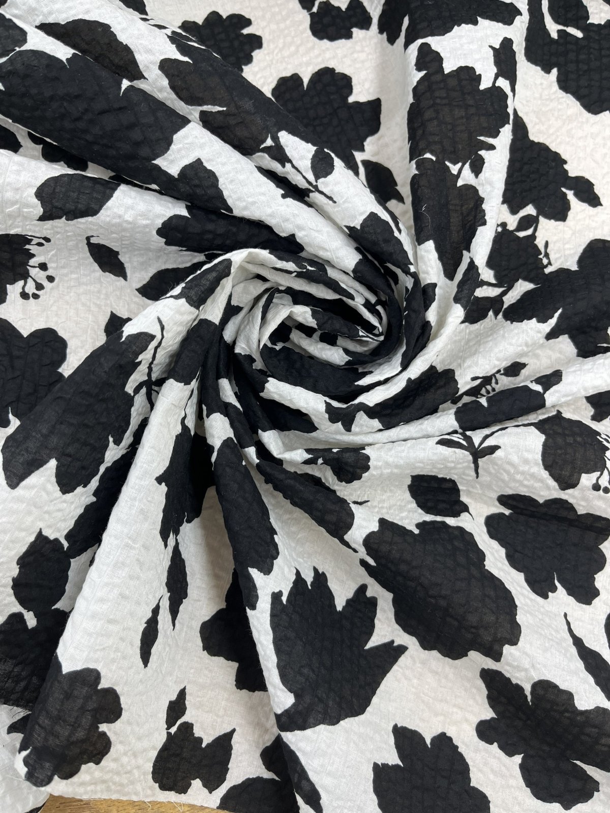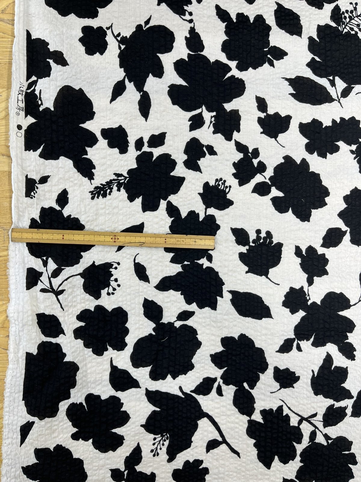 生地: 綿100% 綿80ローンミラクルウェーブプリント(オフ白×ブラック)
