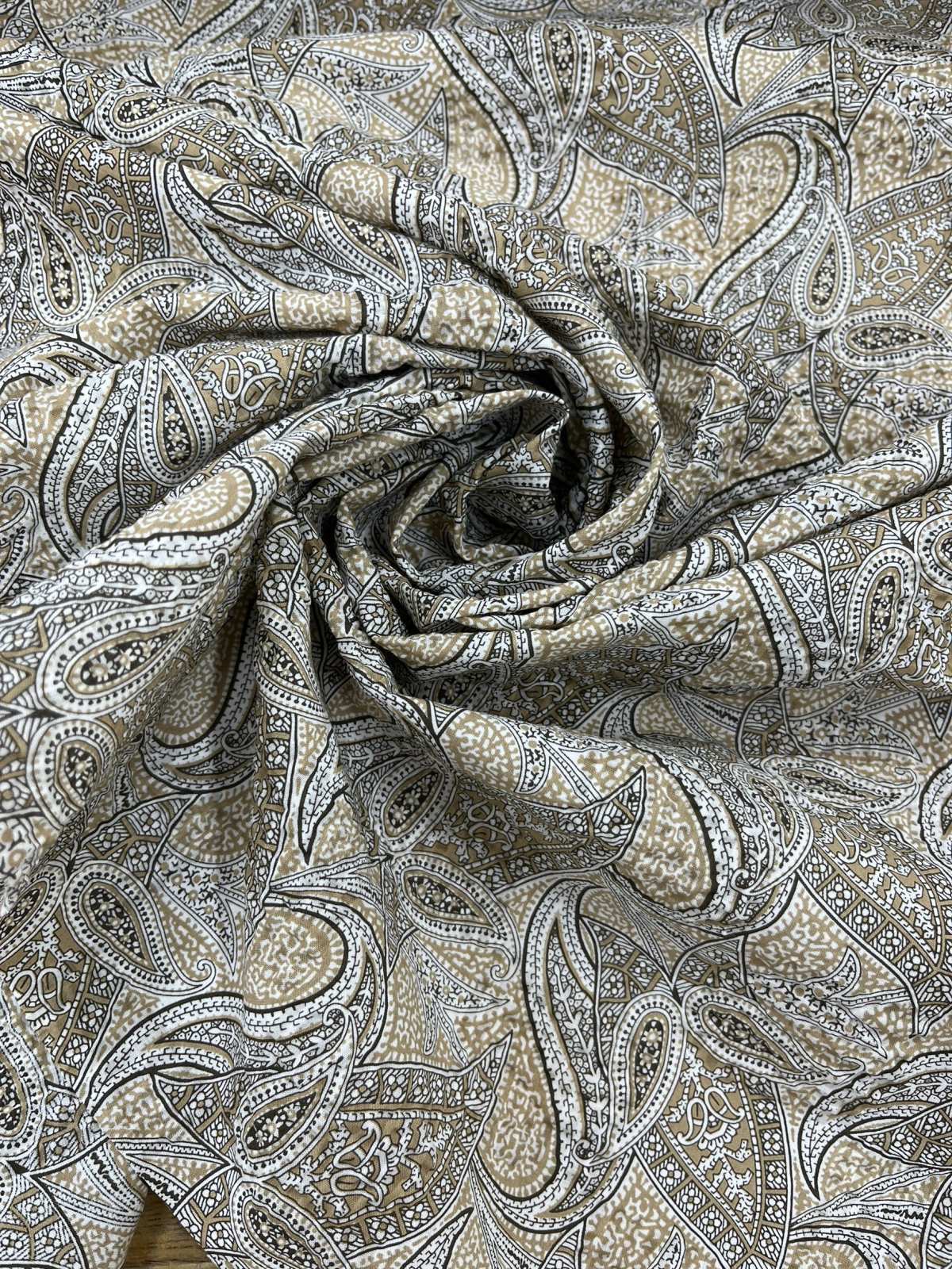 生地:綿100% 塩縮ペイズリープリント(ベージュ系) [kiji-3293]