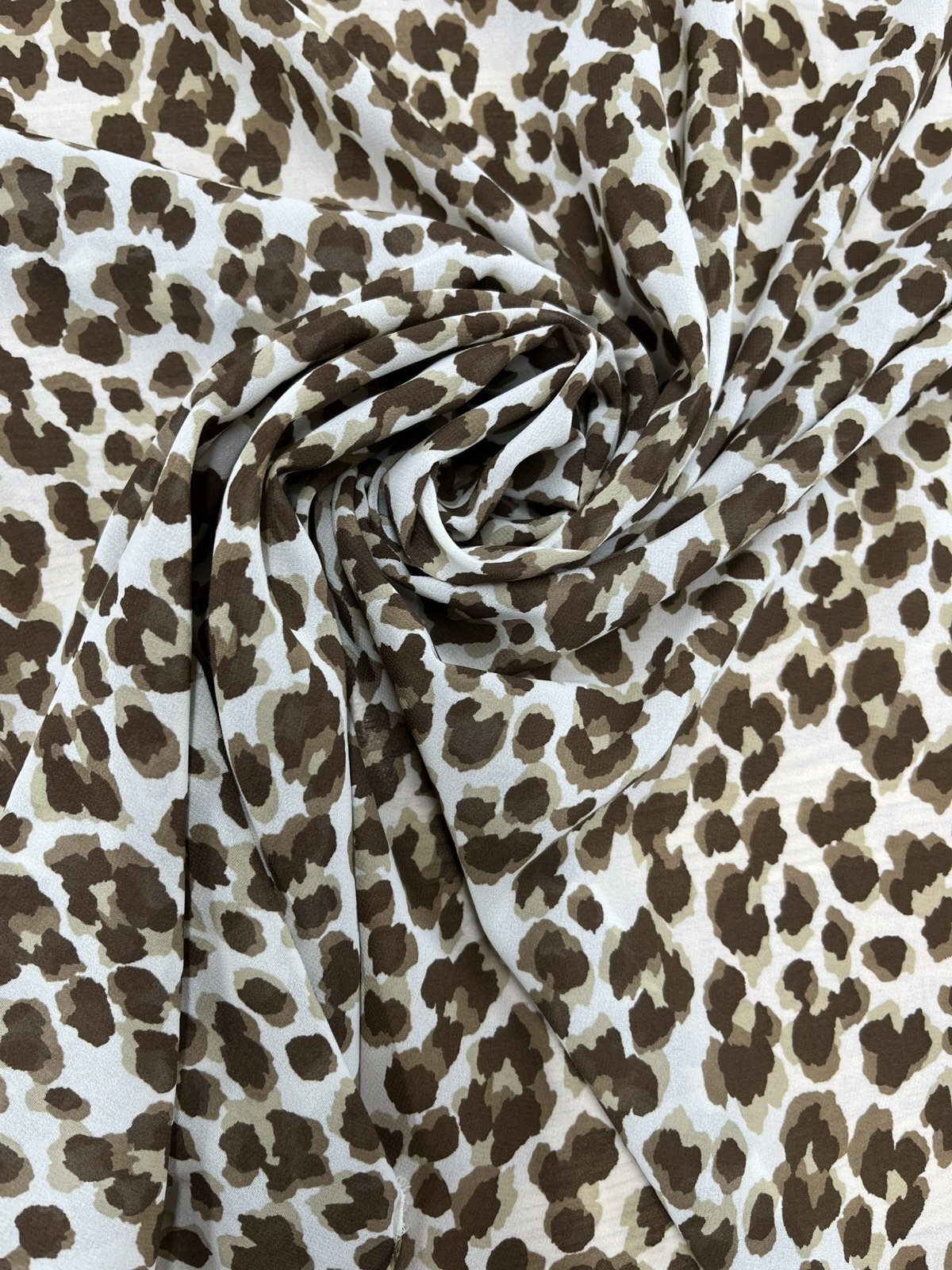 生地:ポリエステル シフォンレオパードプリント(オフ白×ブラウン)