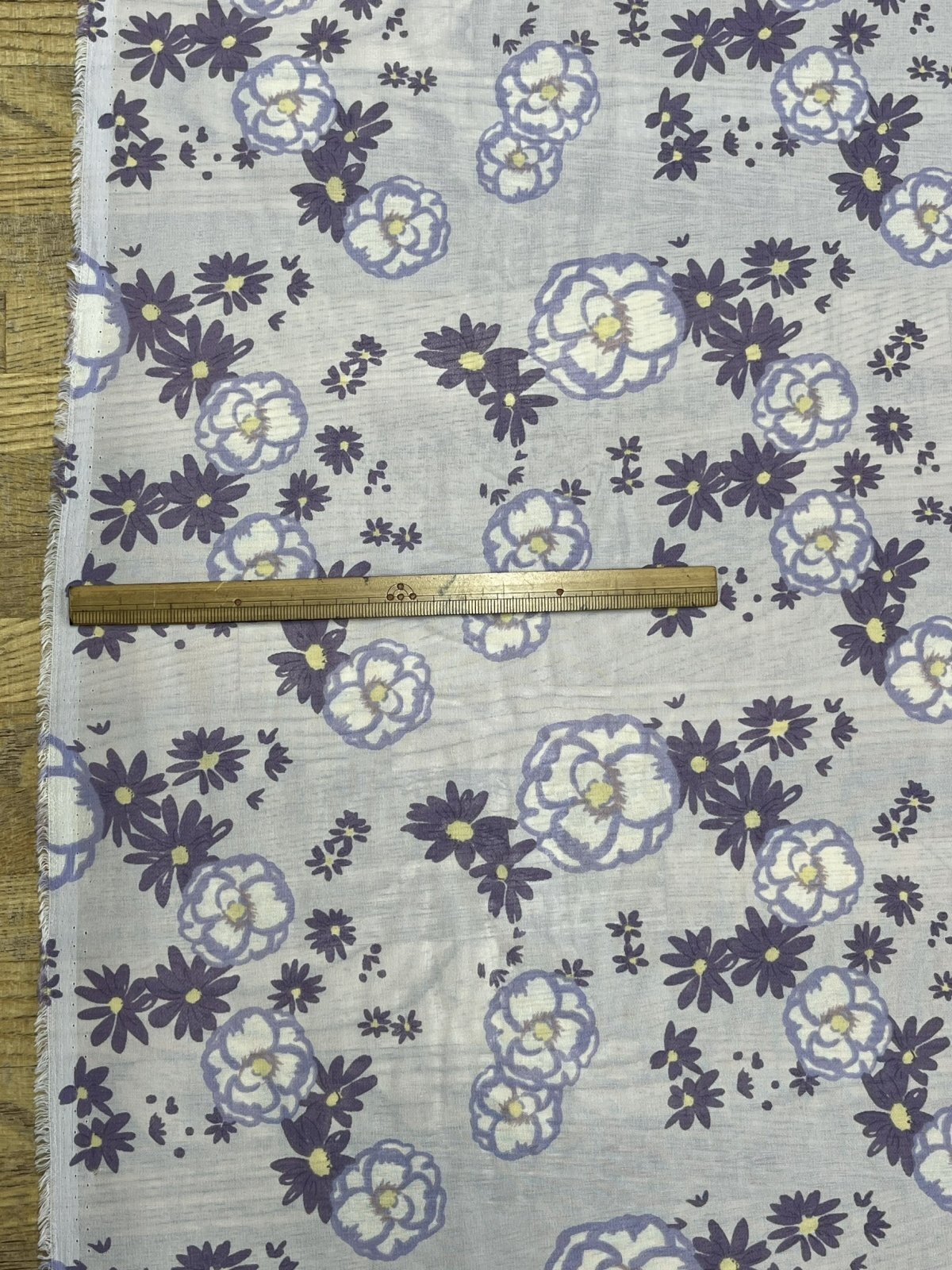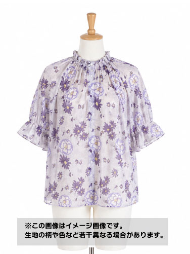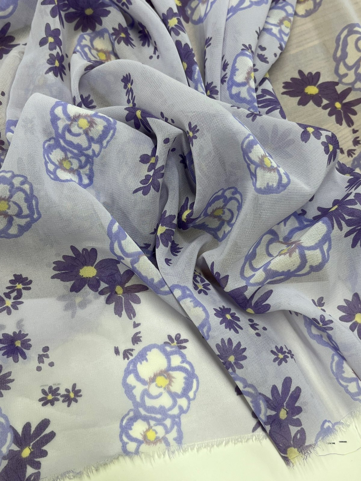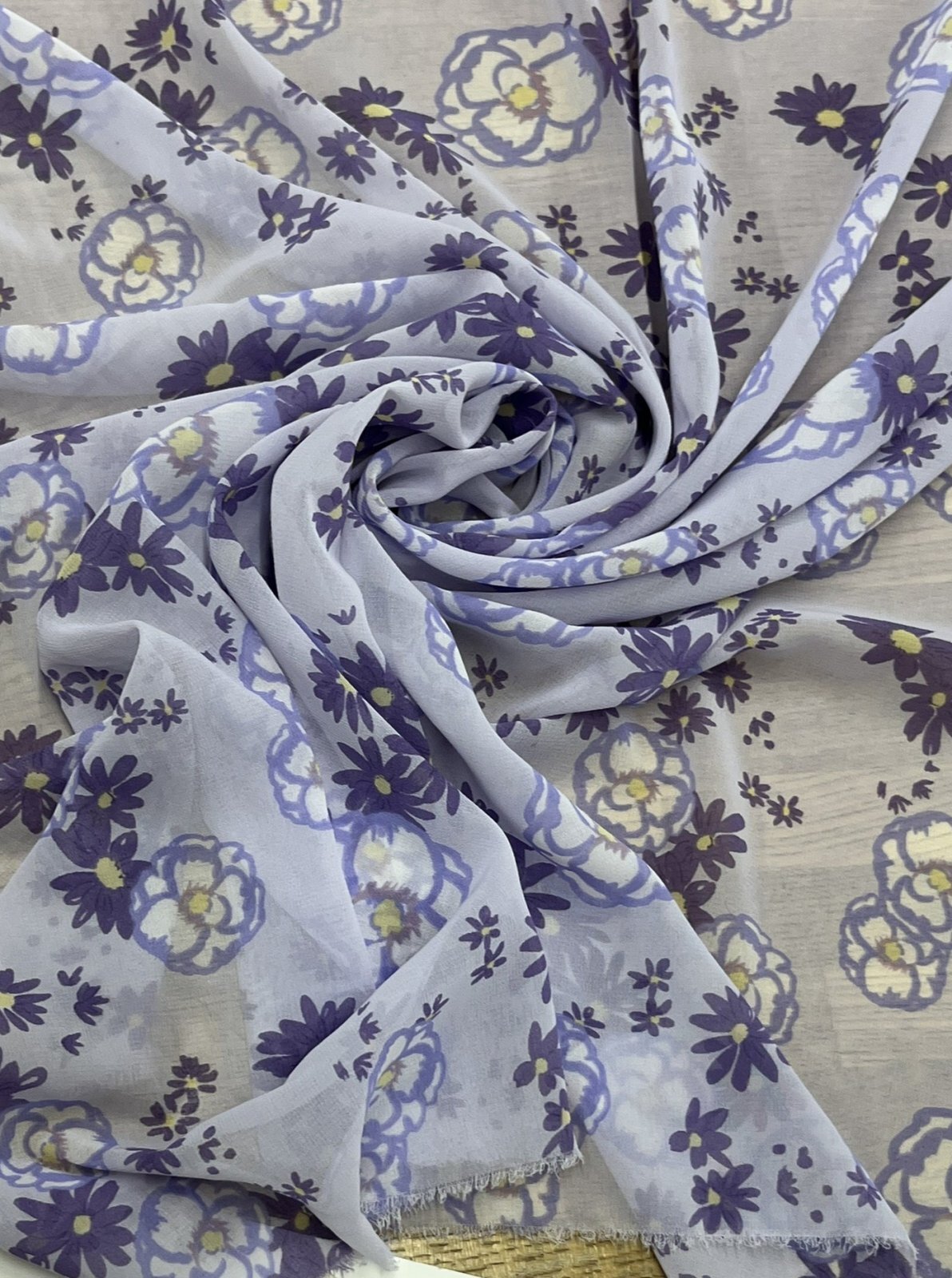生地:ポリエステル シフォンプリント(ラベンダー系フラワー)