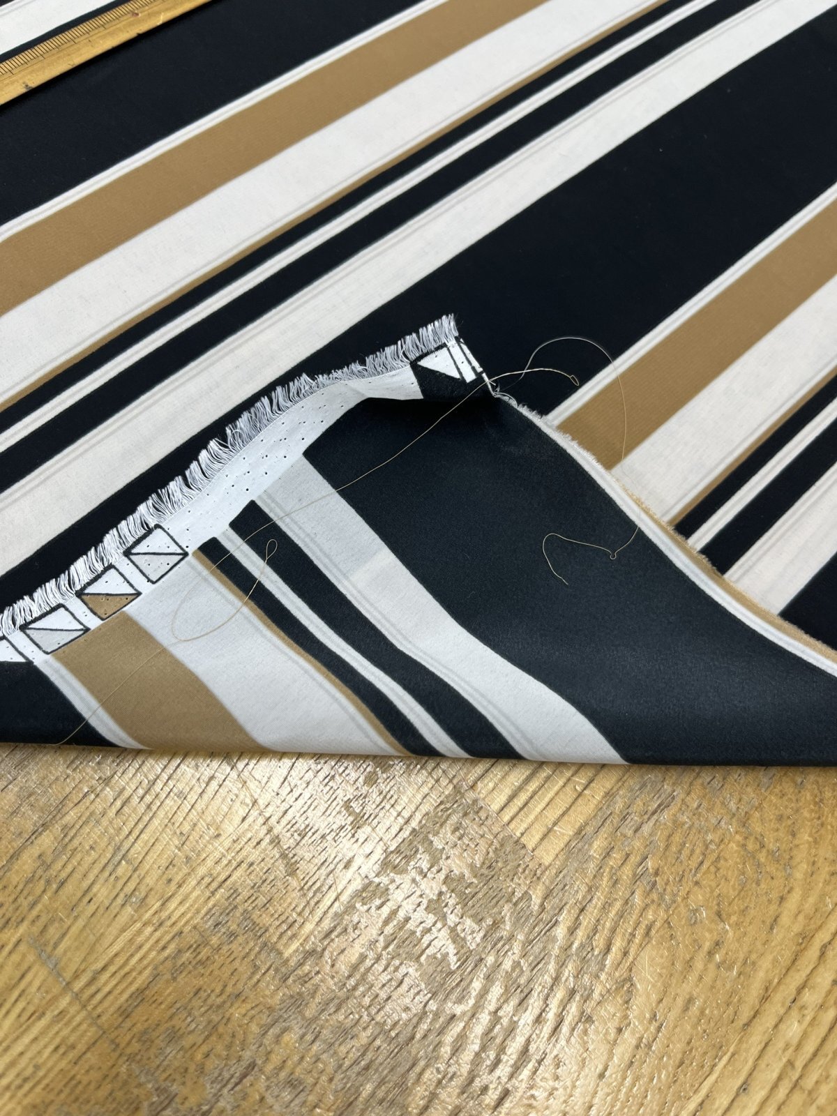 生地:ポリエステル100%デシンボーダープリント(ベージュ)
